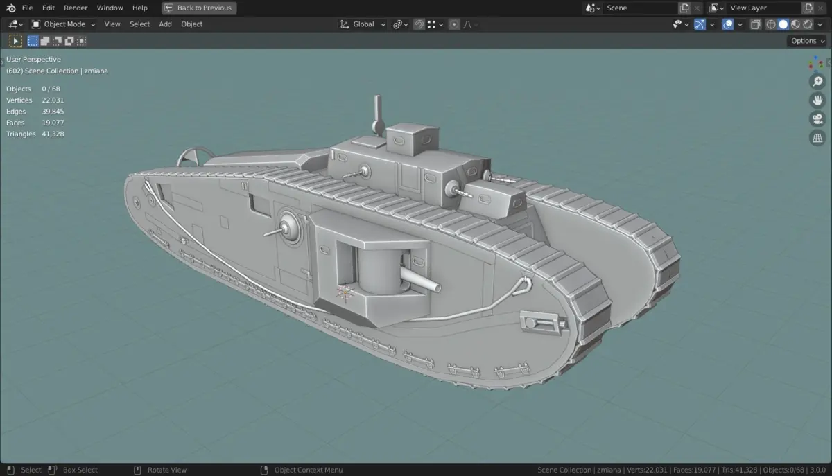 Model is made in Blender 3.0. it is a base mesh model. Made to scale, Blender units. Part of a larger collection of base mesh tanks.