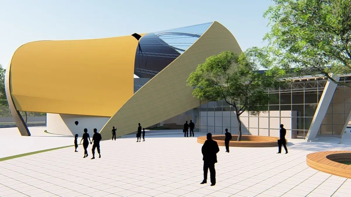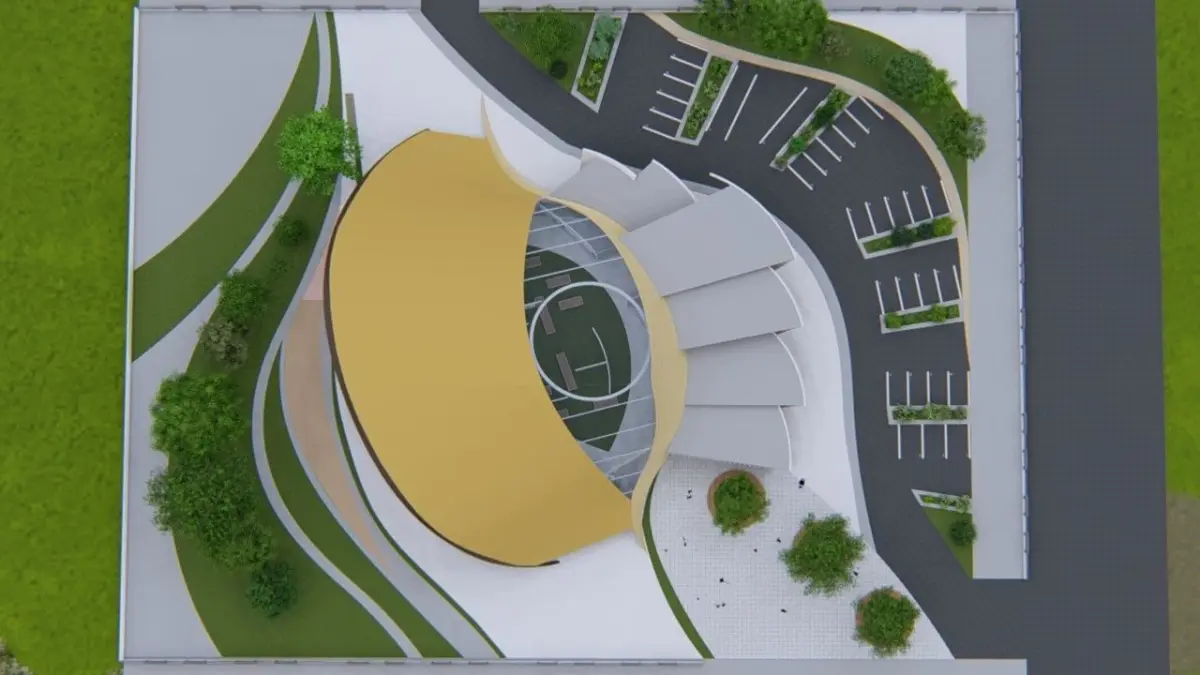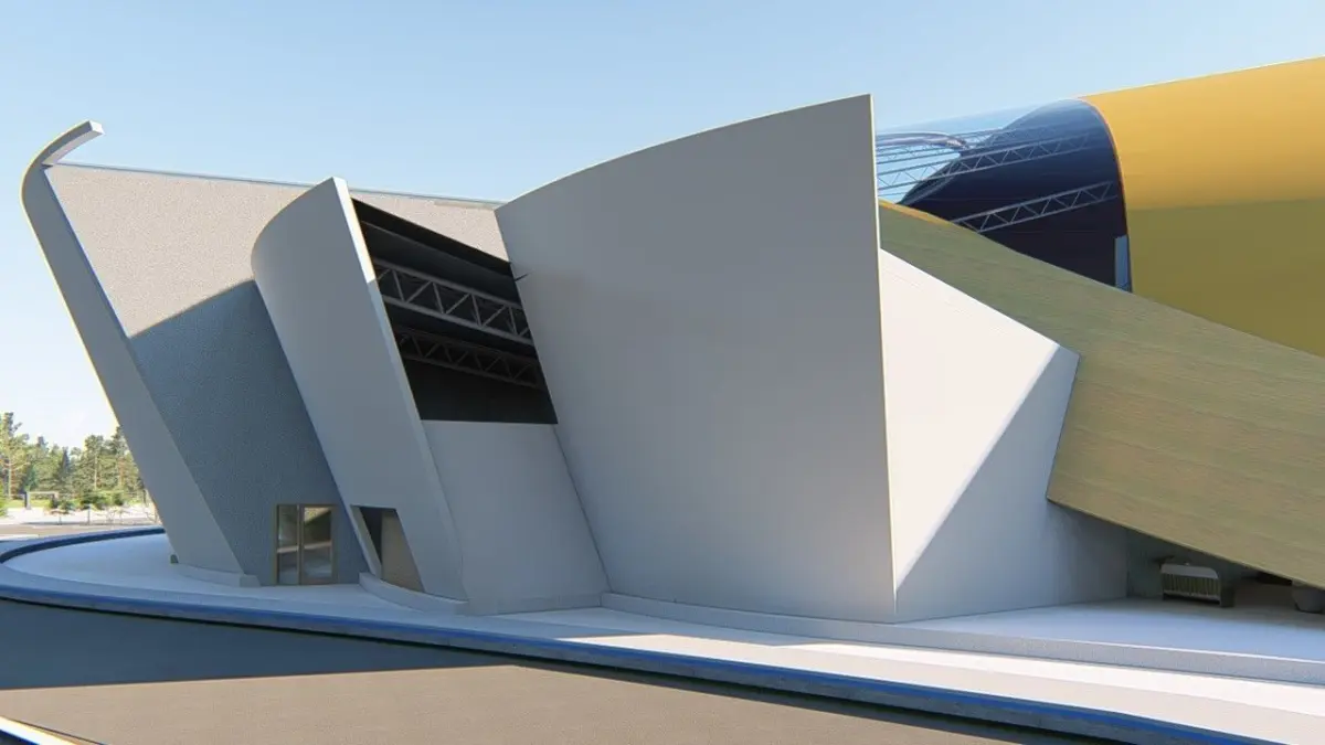 A highly detailed 3D model of a market hall/ industrial building space. This building could represent either a Market hall, exhibition hall, airport terminal, for example.