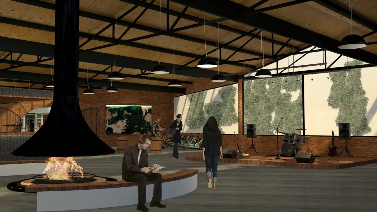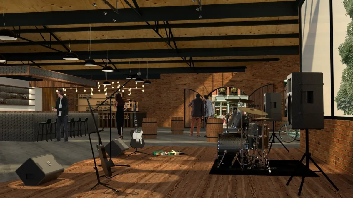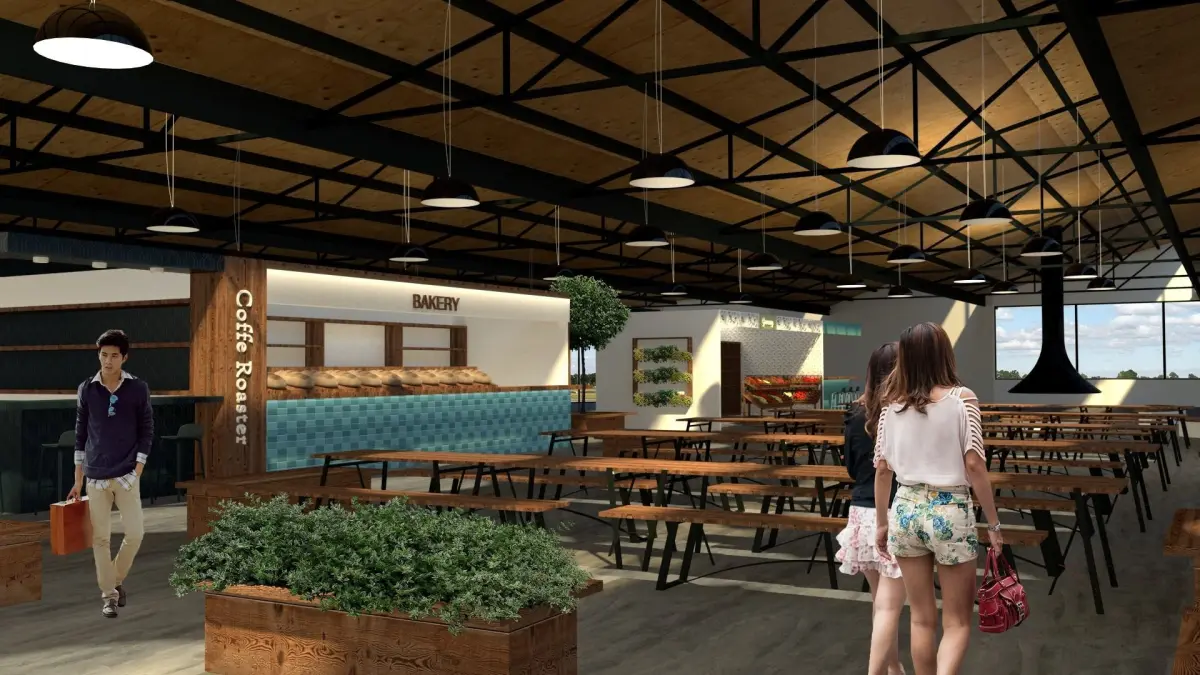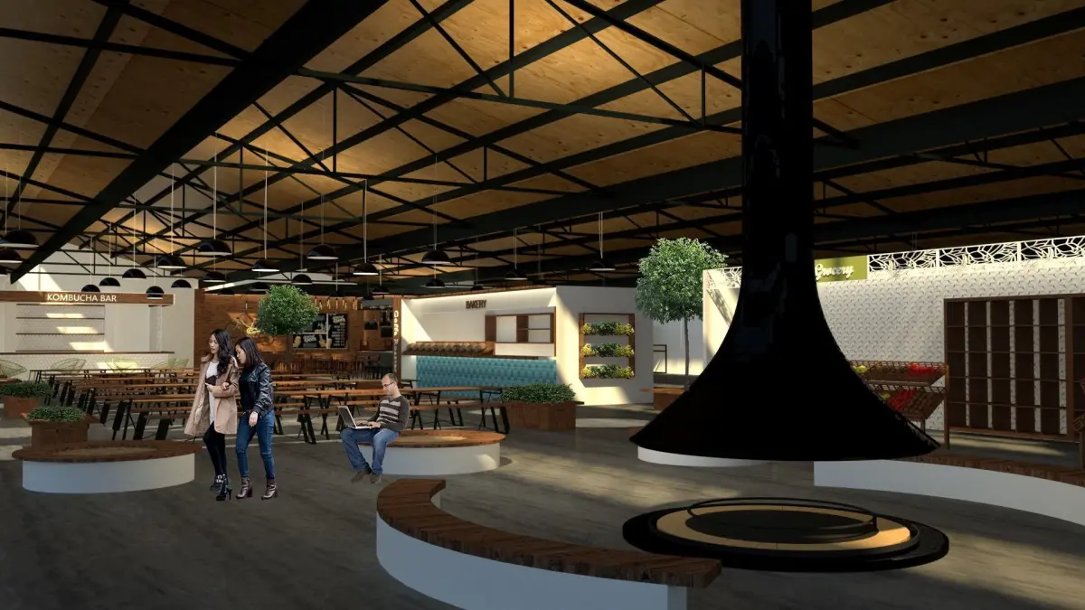 Market interior of restaurant in brick building 3D model