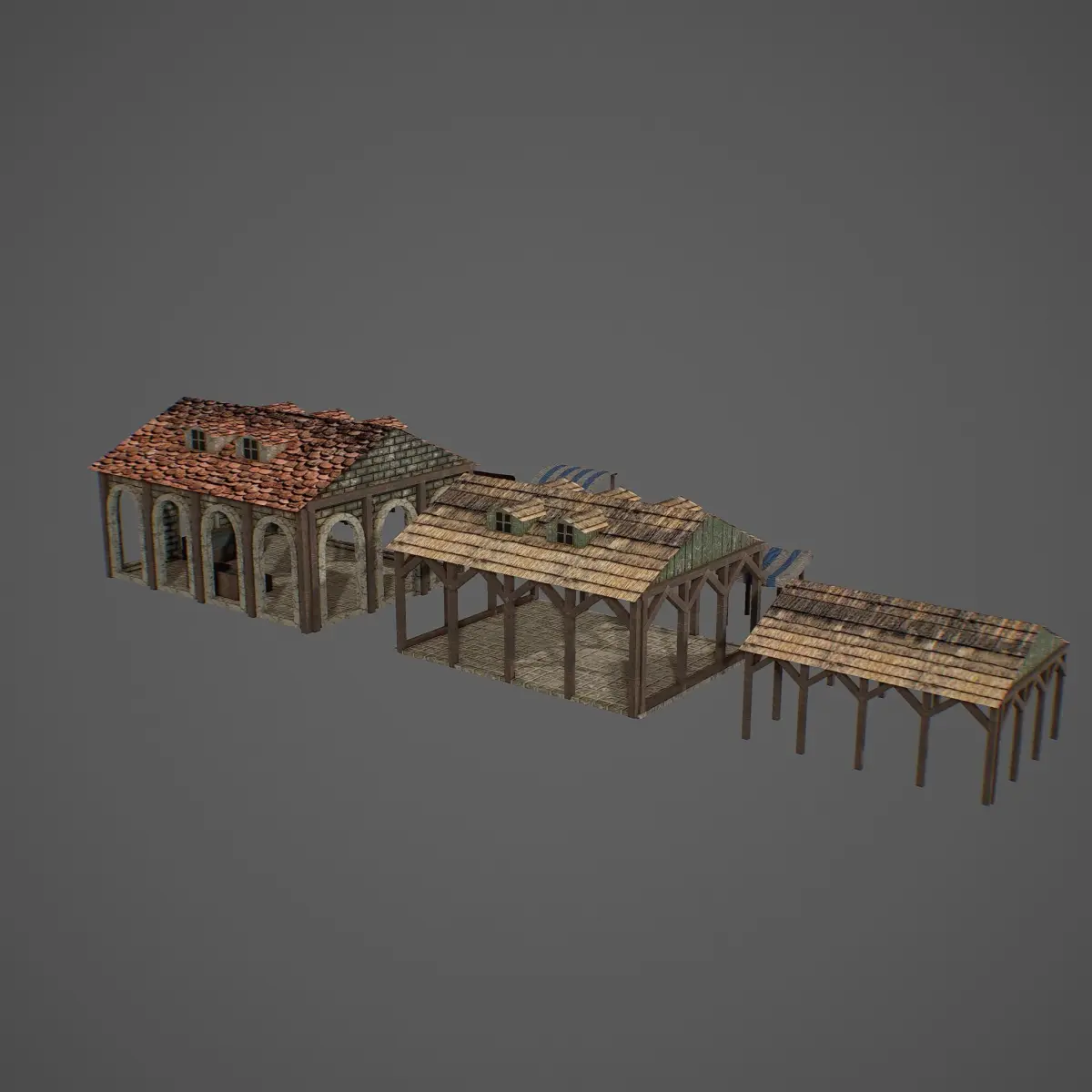High-quality low-poly 3d model of the medieval Market. Buildings for create new worlds and new universes in the style of a medieval RPG.The model is optimized for use in browser and isometric games. 3D model has all the necessary texture maps for PBR renderer.All textures included.Real world size (meters).