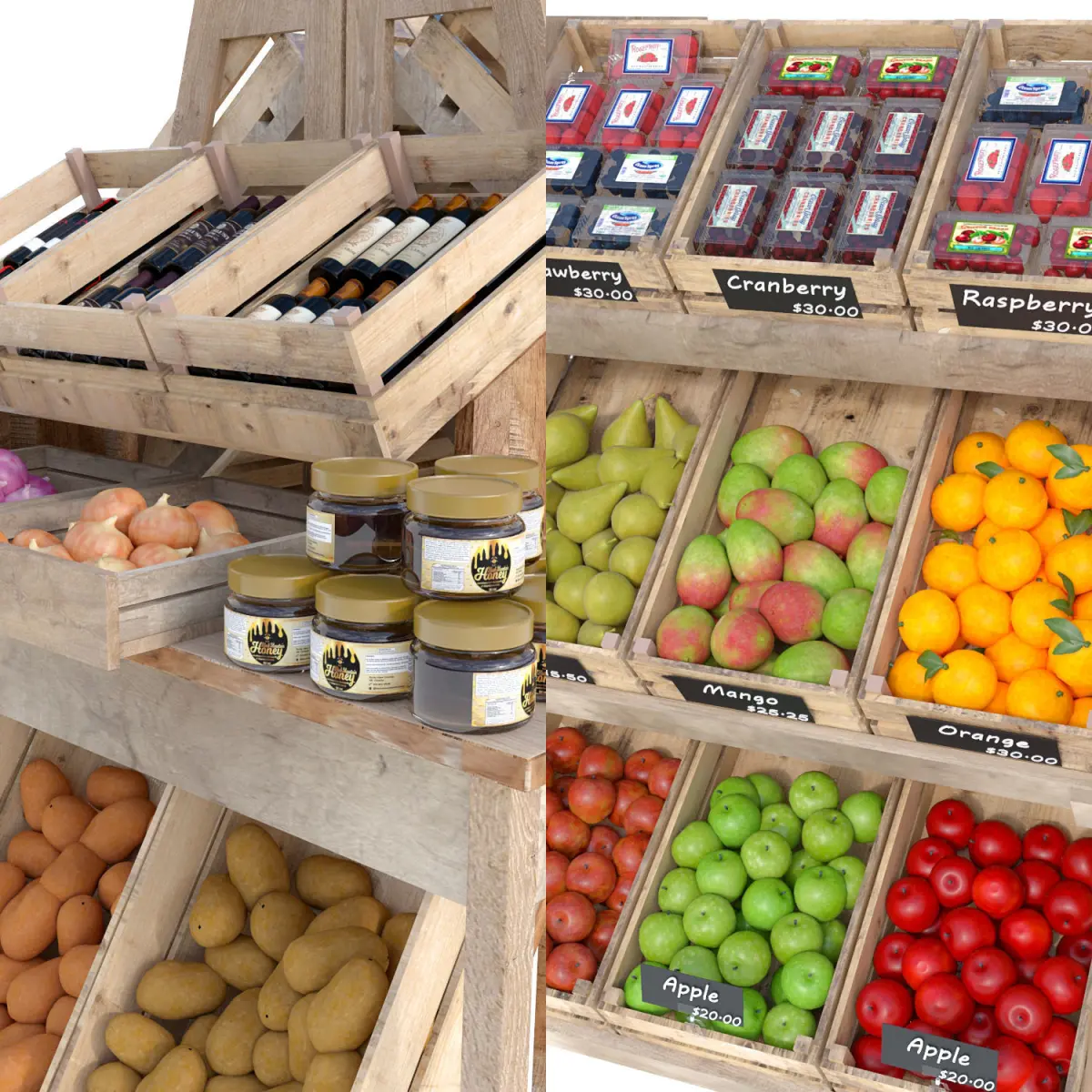 A Grocery Display Shelves model with equipments, rack, pallete and etc...