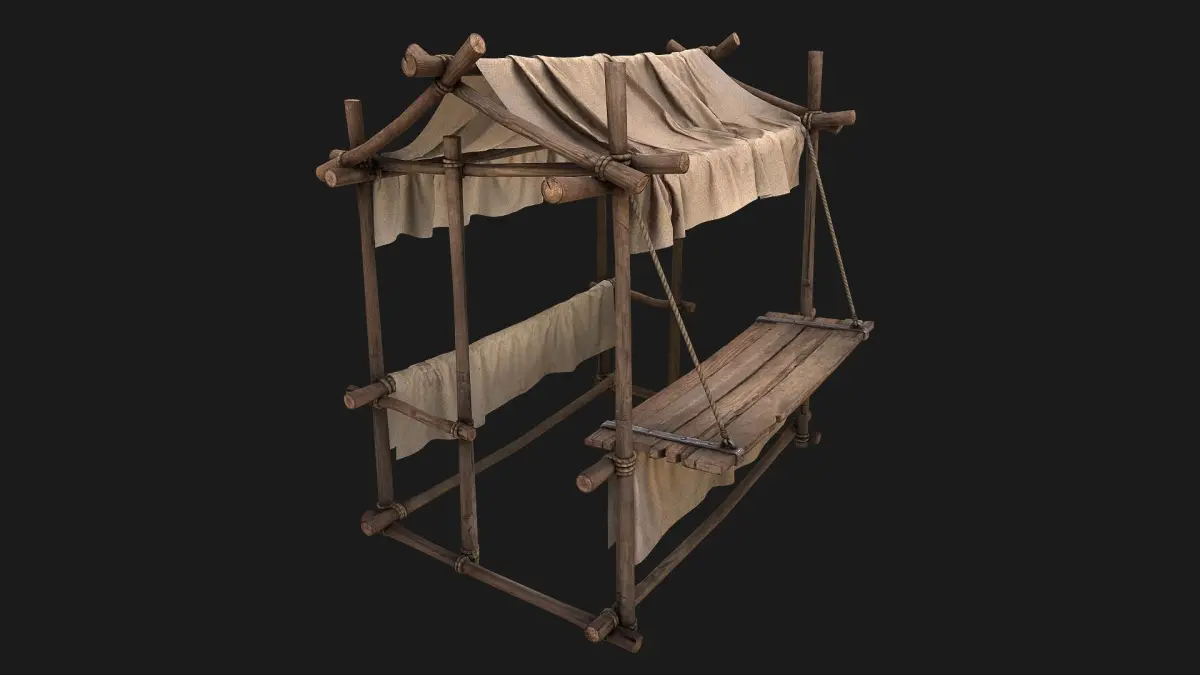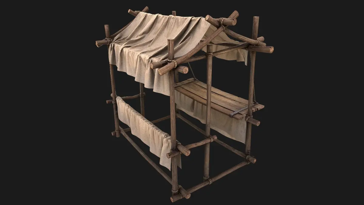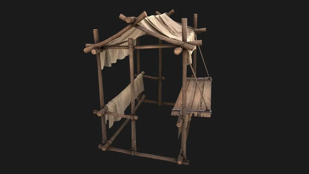 Game ready model. Market Stalls Tent fully textured, sculpted and rendered with Physical based rendering (PBR) - Shown images have been rendered in Marmoset Toolbag .The models contains lods, detailed information on the images.The model consists of two UV Maps :Tent(4096x4096).