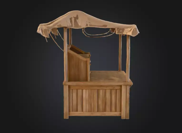 Every element of the Market Stall Display has been designed with storytelling in mind. The wooden framework shows signs of wear and grain detail, while the draped fabric appears naturally tattered and faded by time. The ropes securing the canopy add an artisanal touch, emphasizing the handmade aesthetic of pre-industrial markets. The model’s composition offers flexibility — it can serve as a merchant’s booth, trading stand, bazaar display, or crafting area in both realistic and stylized settings.