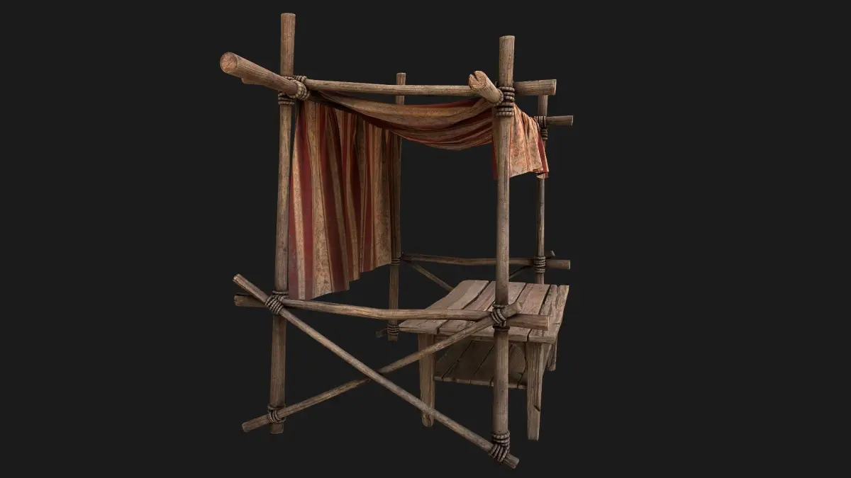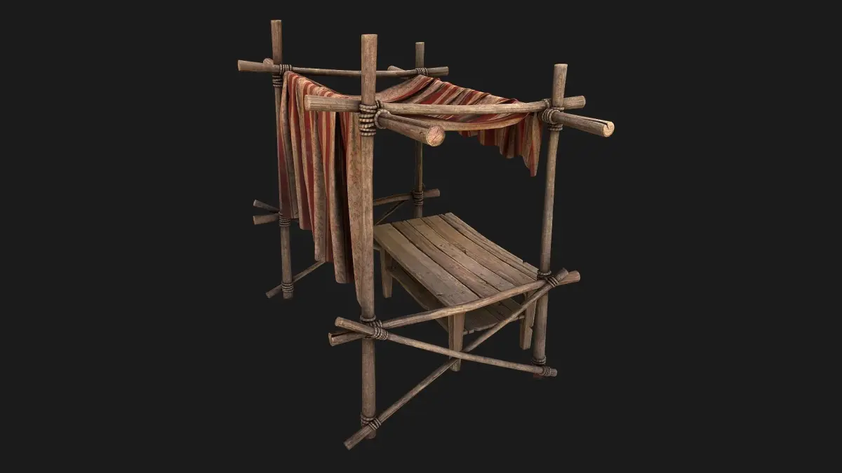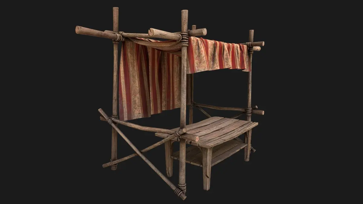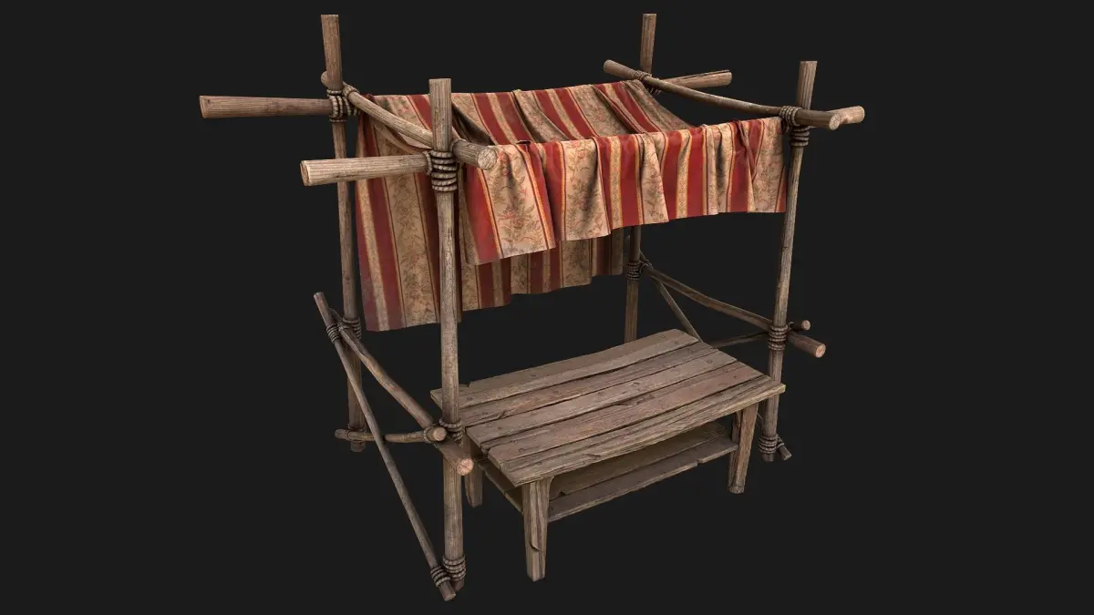 Game ready model. Market Stalls Tent fully textured, sculpted and rendered with Physical based rendering (PBR) - Shown images have been rendered in Marmoset Toolbag .The models contains lods, detailed information on the images.The model consists of two UV Maps :Table(4096x4096),Tent(4096x4096).
