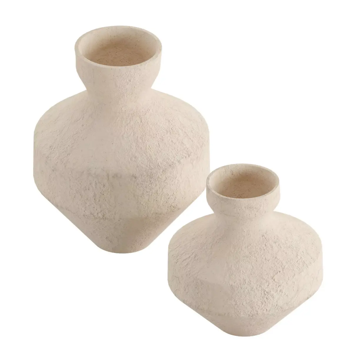 - Our Marla collection's sculptural presence belies its light and airy construction. Skilled craftspeople apply recycled cotton pulp to a mold to create this textured, statement-making vase. Organic curves and facets lend the tall vase the look of an ancient artifact—made modern by the go-with-everything matte cream finish.