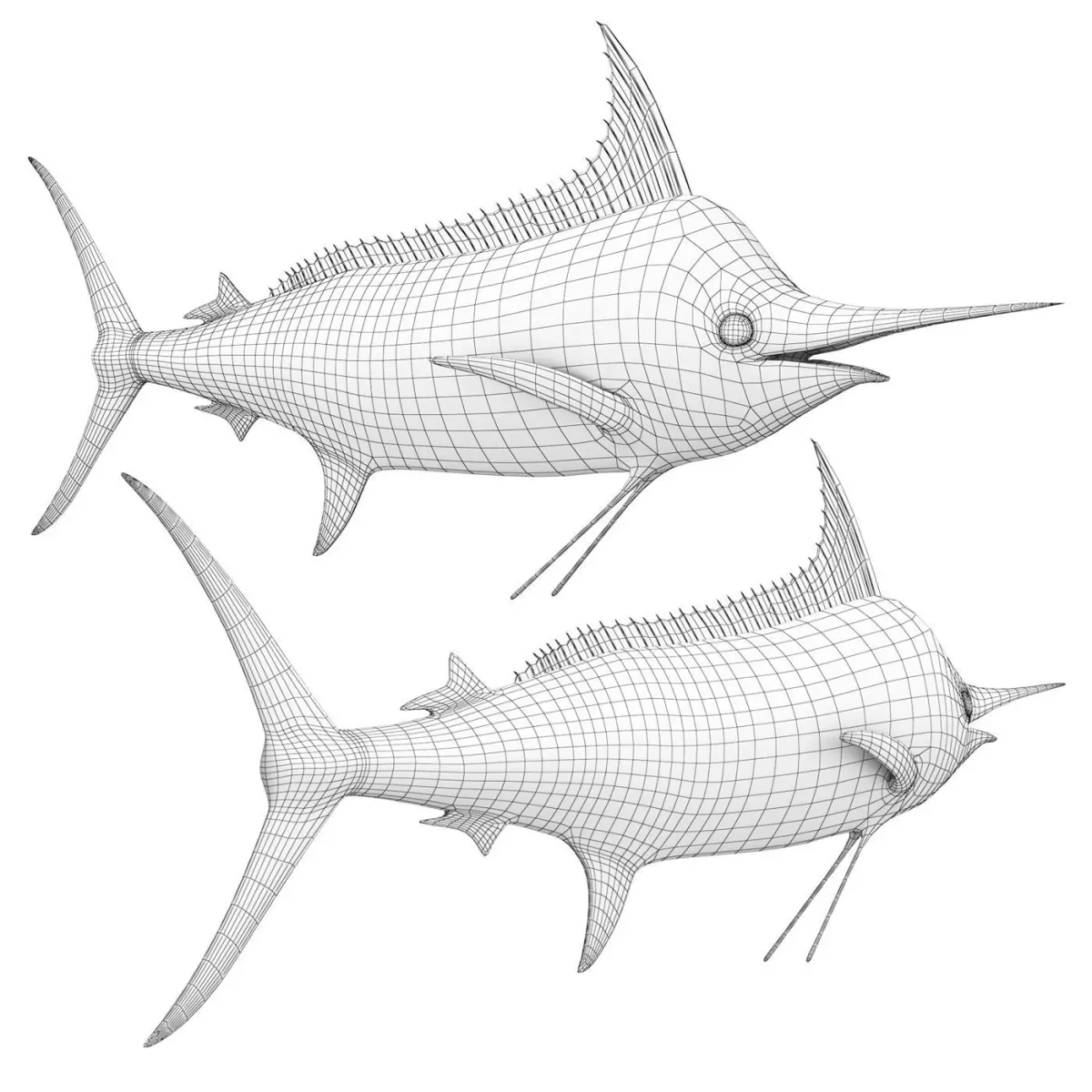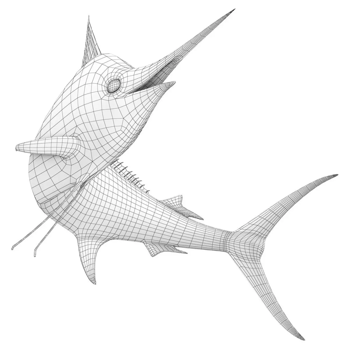 Fish Marlin 150cm. Bend and Twist modifiers retained. PBR textures 4k