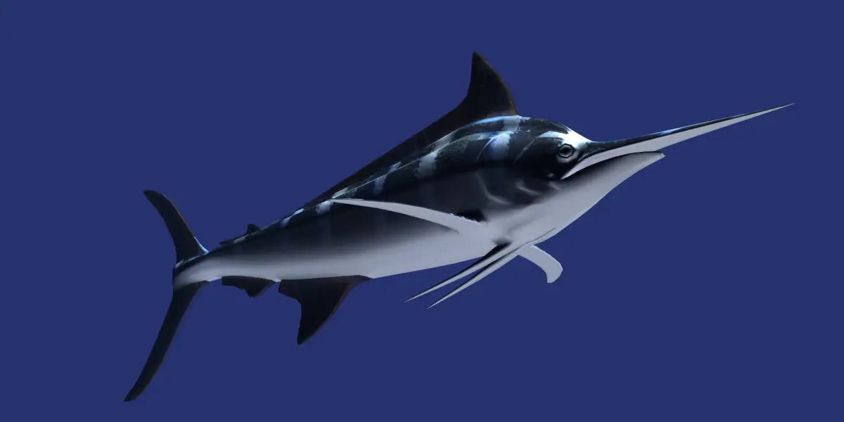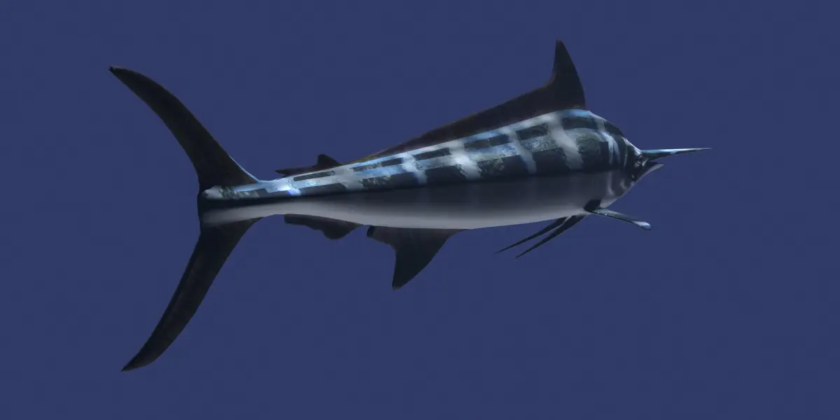 Marlin model mesh, these models are sold just as meshes ready for further work, the included textures and materials were used for the render of the model imagery , they are included just as a bonus for buyers.
