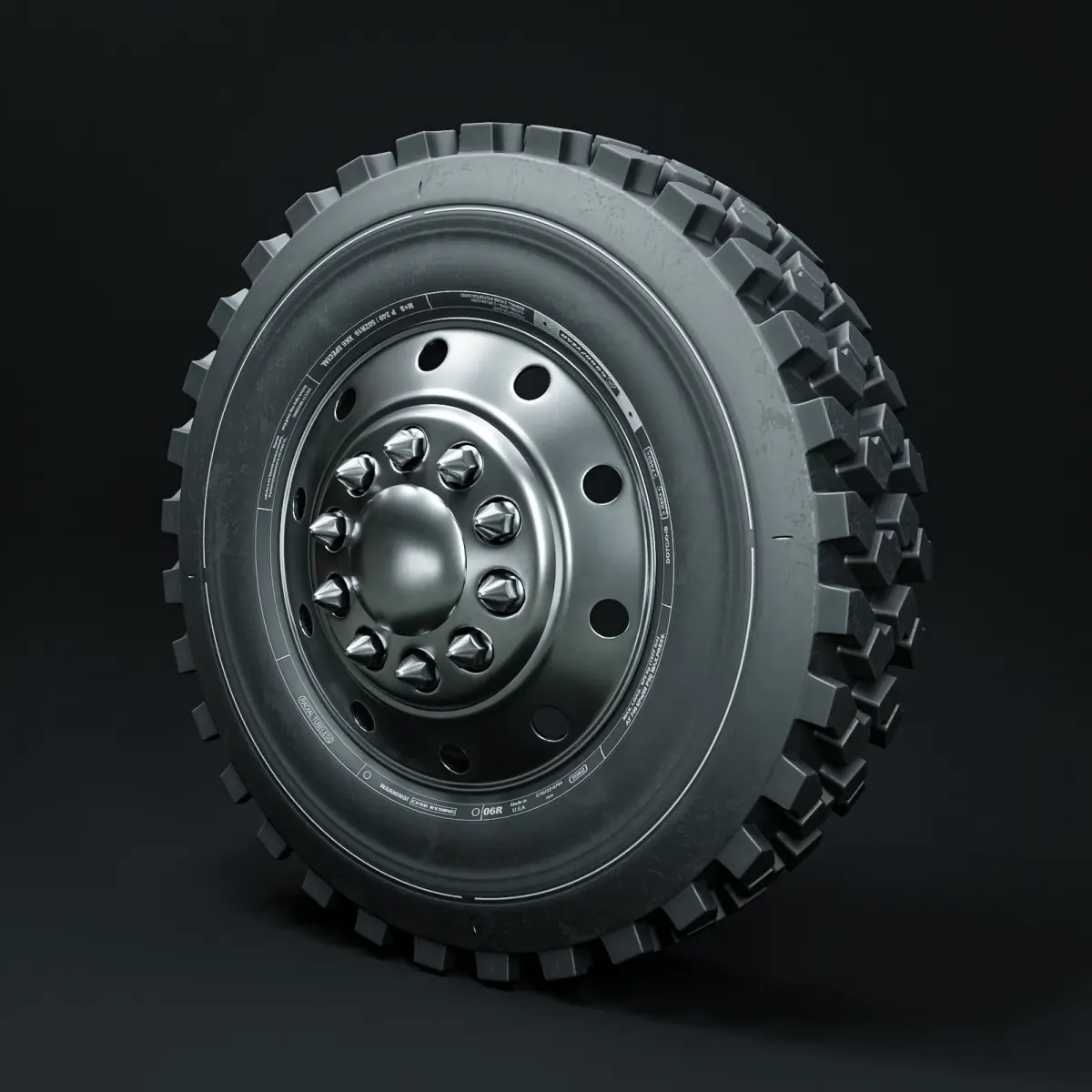 High poly Marmon 110P special terrain tire and classic rim. Models made in Maya and rendered in Blender Cycles. Textured in Substance Painter. Textures in 4k - PBR metallic roughness. Two materials (rim object and tire object). High poly model ready for rendering. Package contains 2 models (tire and rim), 4k textures, Blender - render ready scene with camera and light settings for high quality, photorealistic rendering in Cycles. Feel free to reach me in case of another textures format or any other necessity.