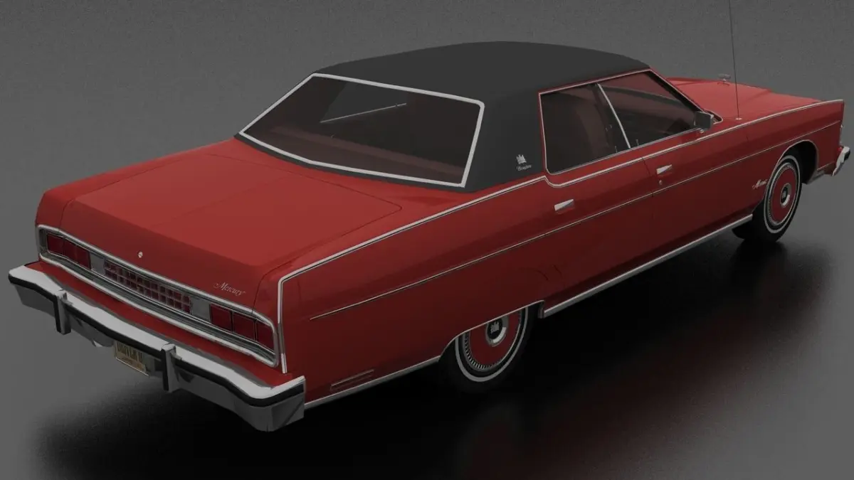 3D model of Marquis Brougham 4dr 1973. American 4 door full-size car produced in 1973-1974