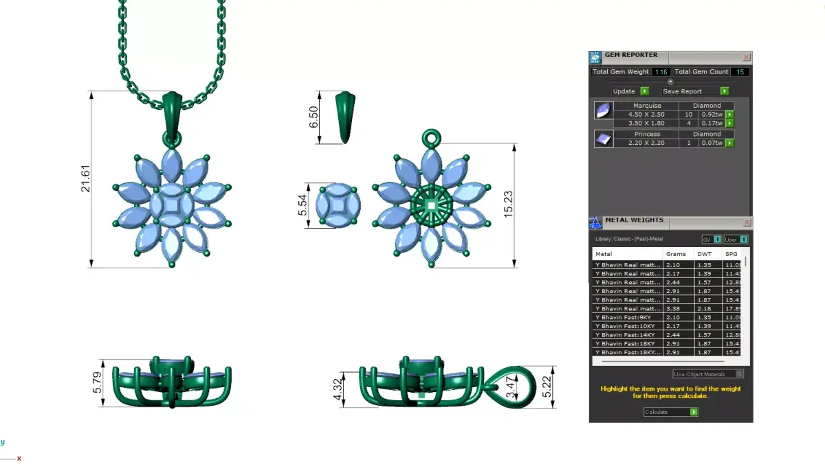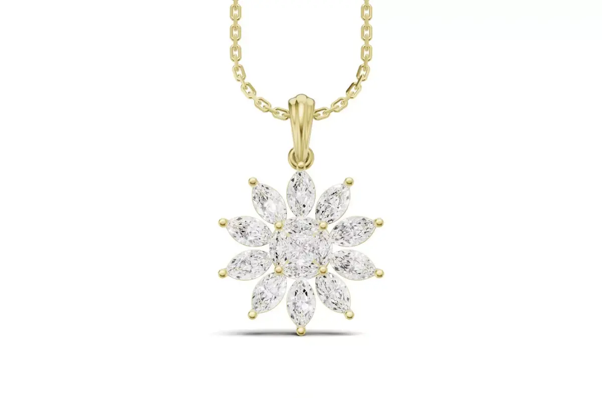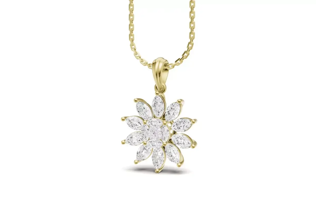 Marquise Cluster Diamond Pendant With Flower Design 3D print model