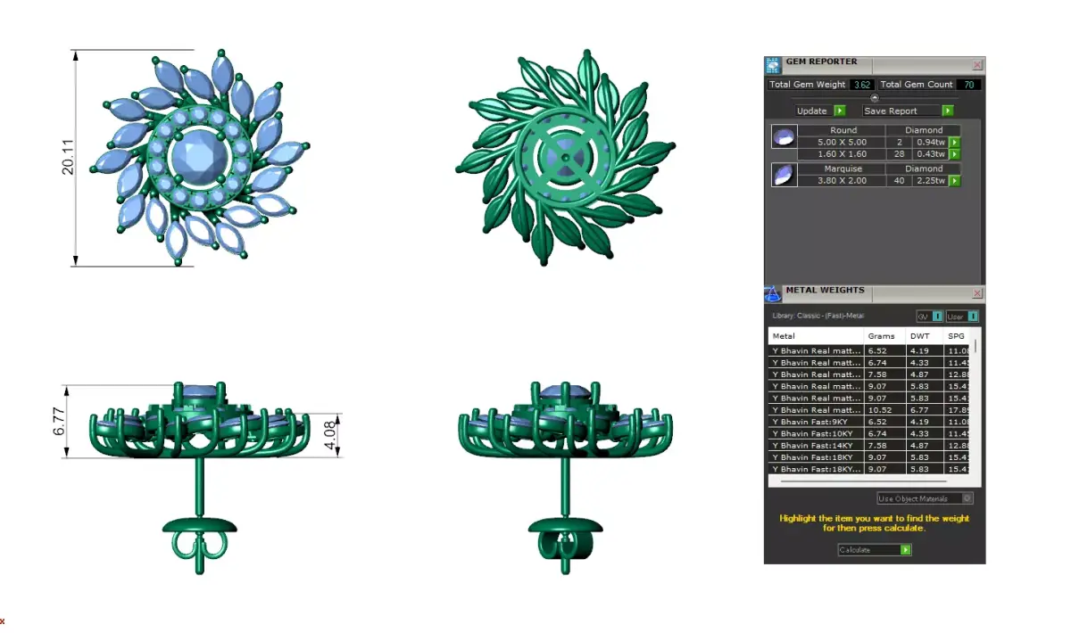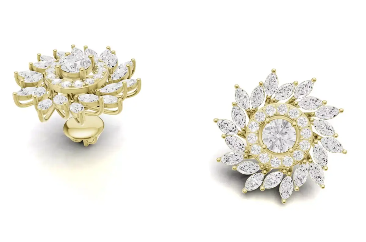 Marquise Diamond Floral Stud Earrings With Pointer 3D print model