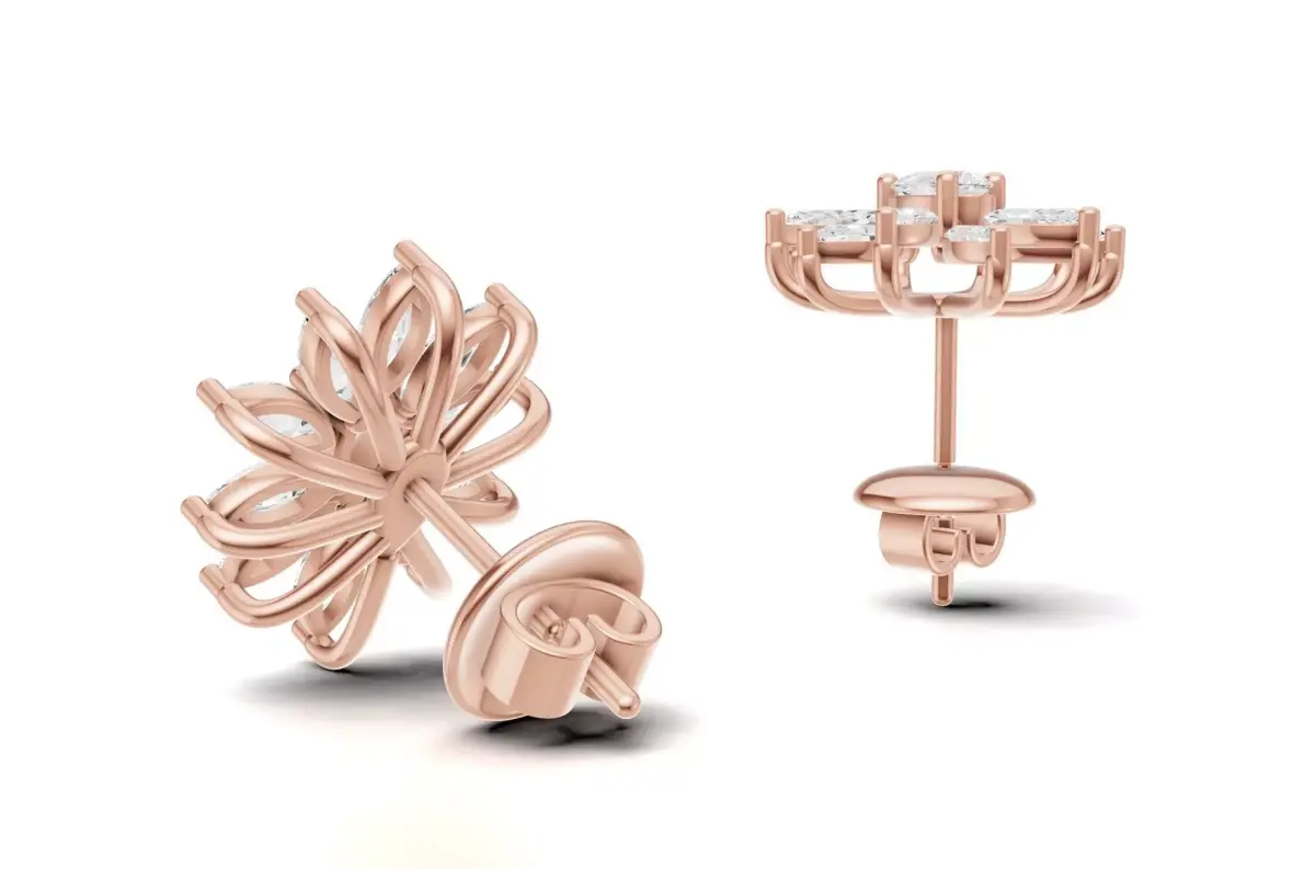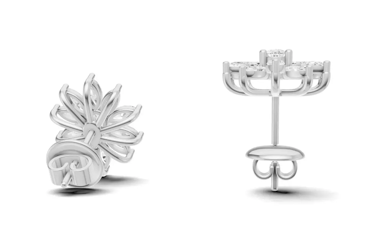 Marquise Diamond Flower Stud Earrings For Women 3D print model