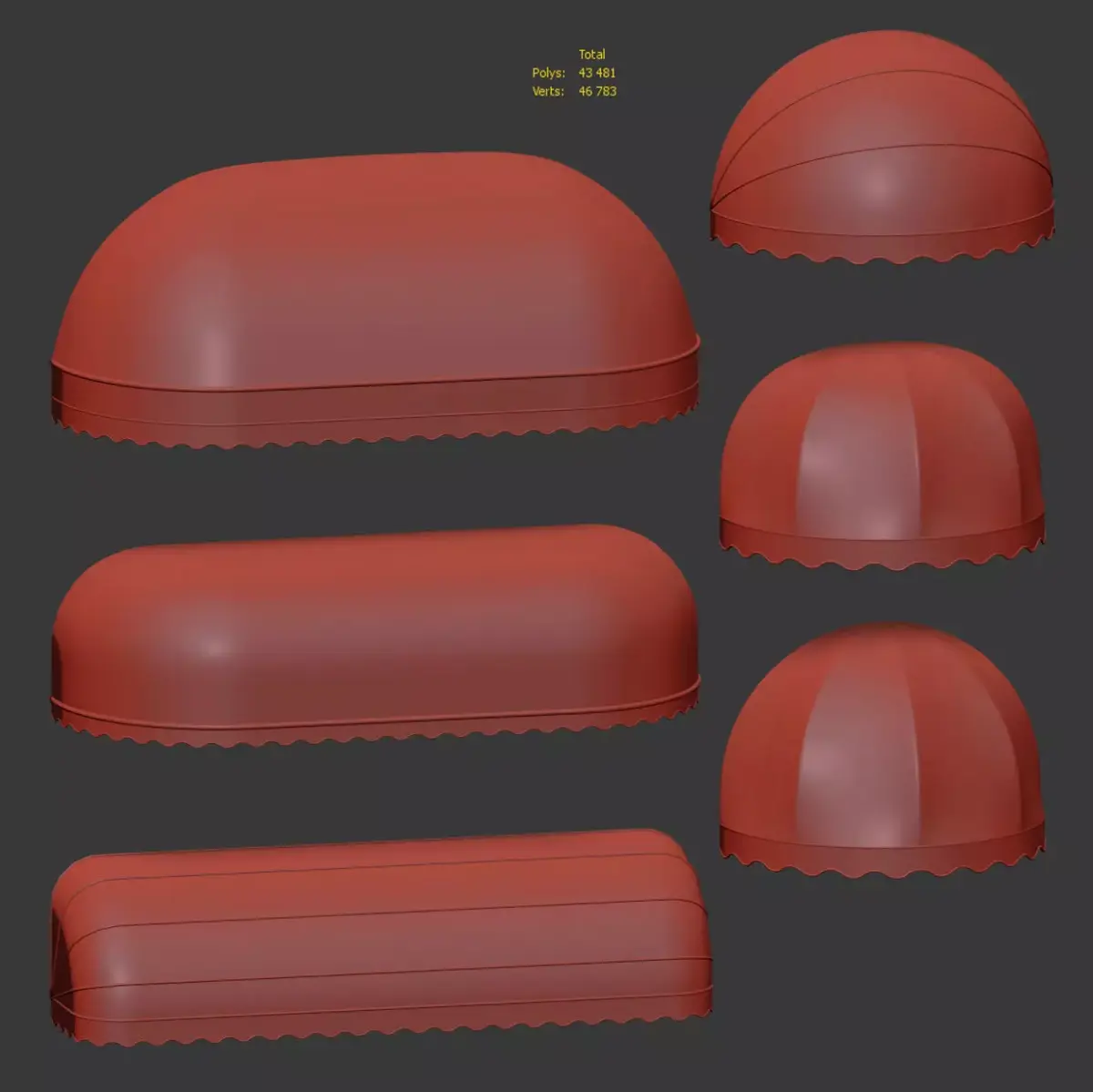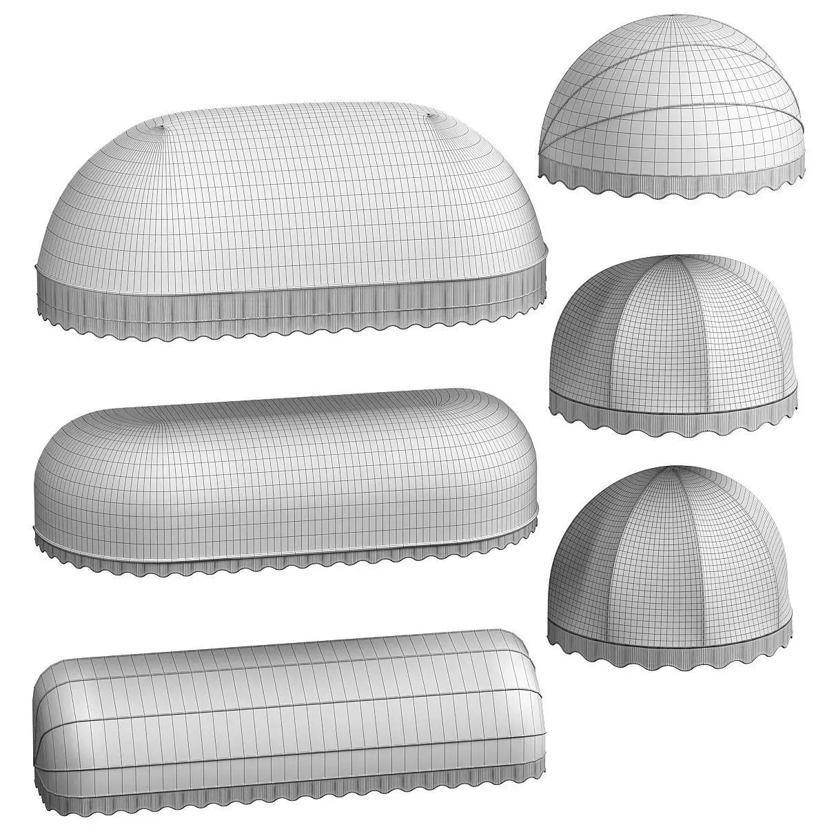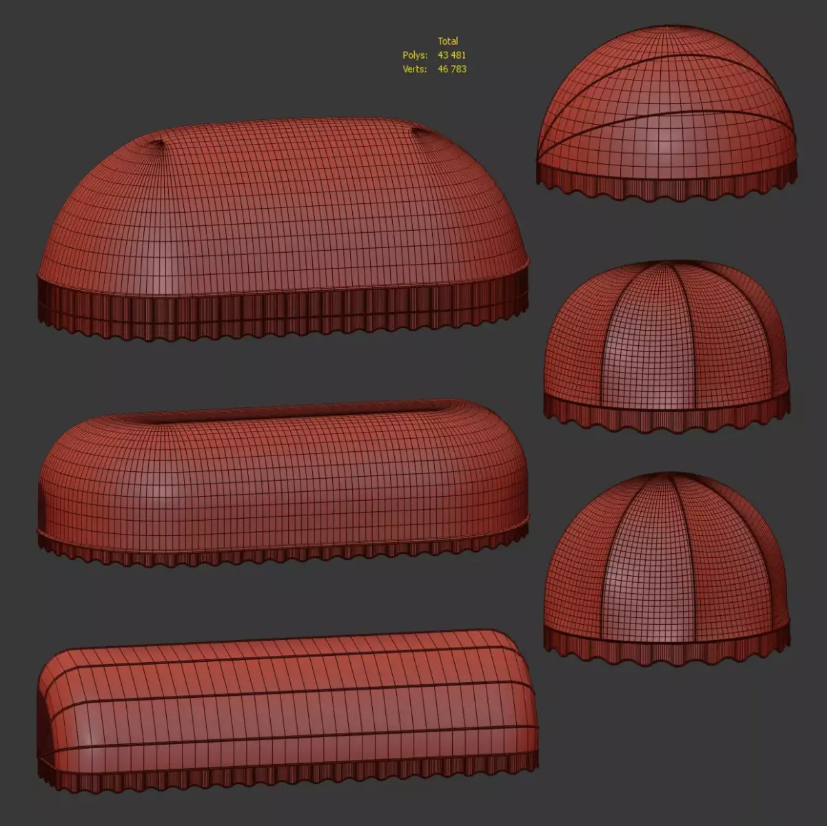 6 Low-poly awning models with different types of rounding