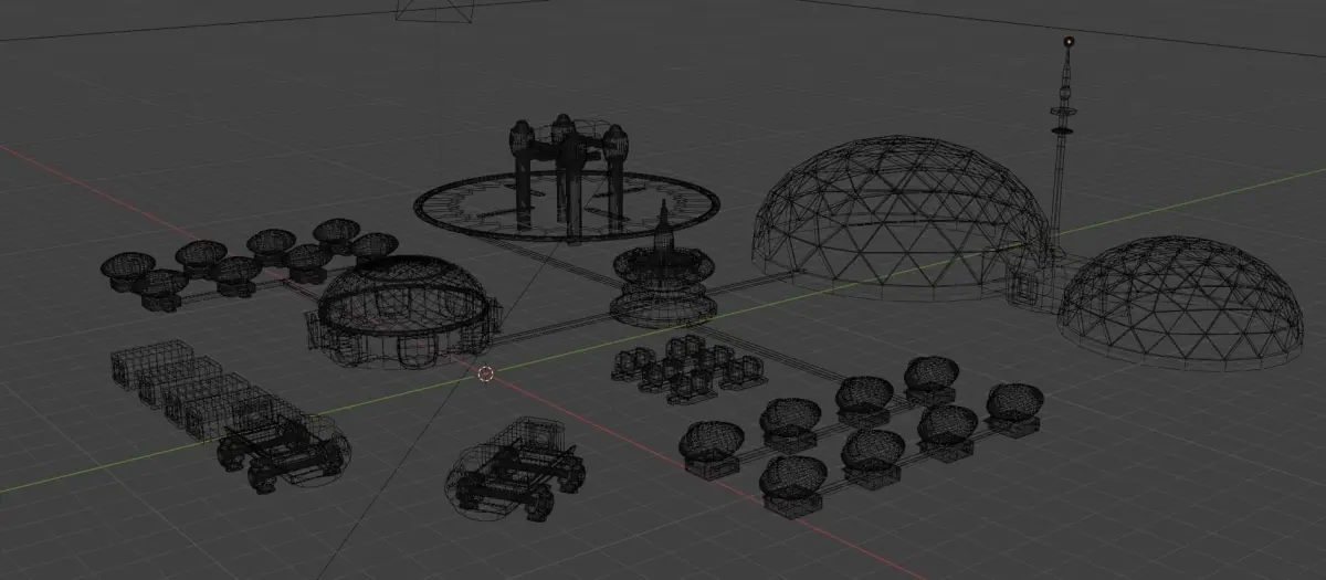 blend, fbx, stl, mtl, obj files of a futuristic scifi mars colony. can be used for any 3D project.