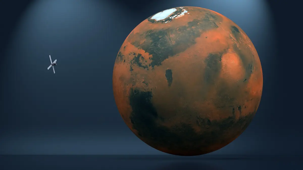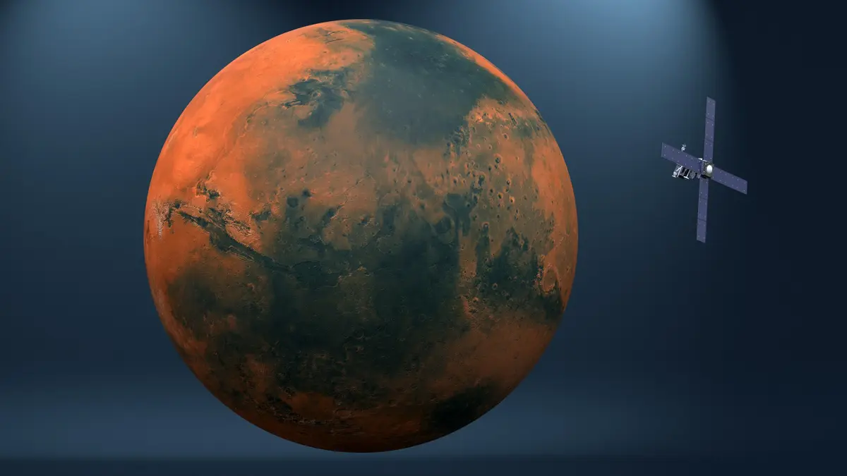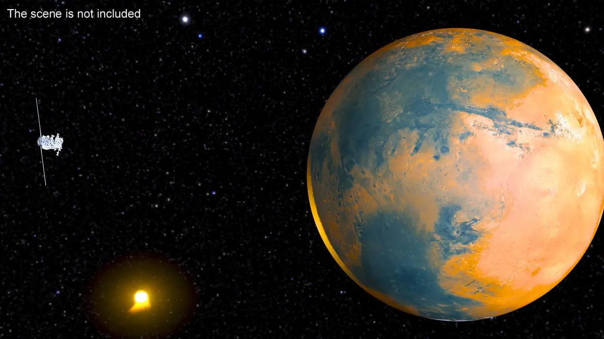 Constructed with intricate features, the model includes solar panels, antennas, propulsion systems, and a sleek, aerodynamic design. The satellite is rendered with realistic textures and materials, showcasing advanced space technology. Its design reflects the cutting-edge innovation used in real-life Mars missions, making it perfect for visualization and simulation purposes.