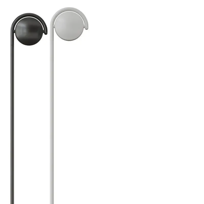 Inspired by the bent tubing around local street signs, design duo kaschkasch have created a family of table and floor lamps sharing the same arched silhouette. The light source comes from a tilting circular disc, which can be adjusted to create both an indirect ambient and direct task light beam. The lamp body is crafted from powder coated die cast aluminium and steel, and the light source is an injection moulded polycarbonate opalescent lens that conceals a flat panel of light. Both lamp designs are available in different colours and are suitable for a variety of private and corporate settings.