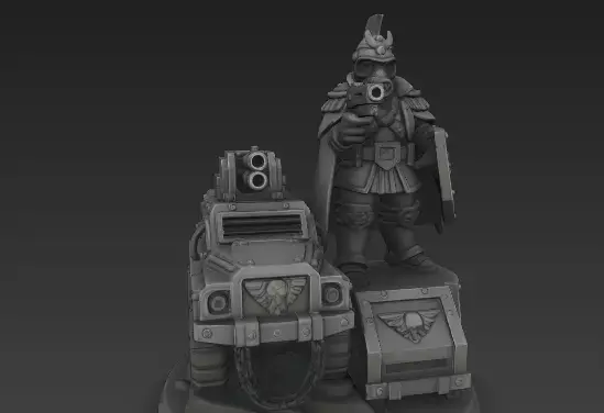 Presenting a 3D printable, highly detailed model of Marshal Wilhelm, the heroic leader of the Valour Korps, accompanied by an armored car—an epic centerpiece for tabletop wargaming, miniature collections, or dioramas. This model captures the essence of elite military command, blending ceremonial regality with the hardened grit of a field general who’s led countless charges and commanded with both strategy and heart.