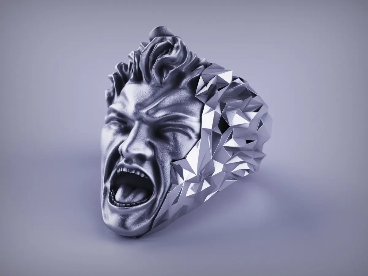 Outside: 23.5mm x 29mm x 29.5mmInside diameter: 19.5mm (US size 9½) — but feel free to resize it in any 3D software.Weight in silver: Approx. 20g