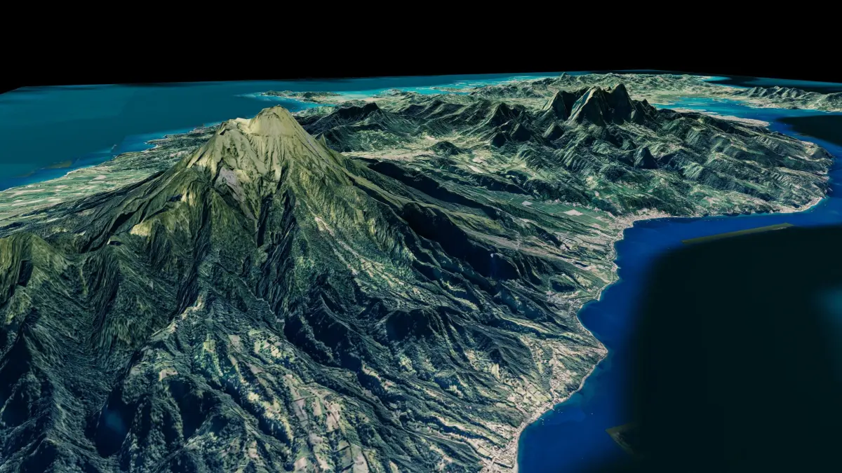 Martinique island full 3d model terrain. 3d model of the Island of Martinique with its landscape of mountains, beaches and forests.