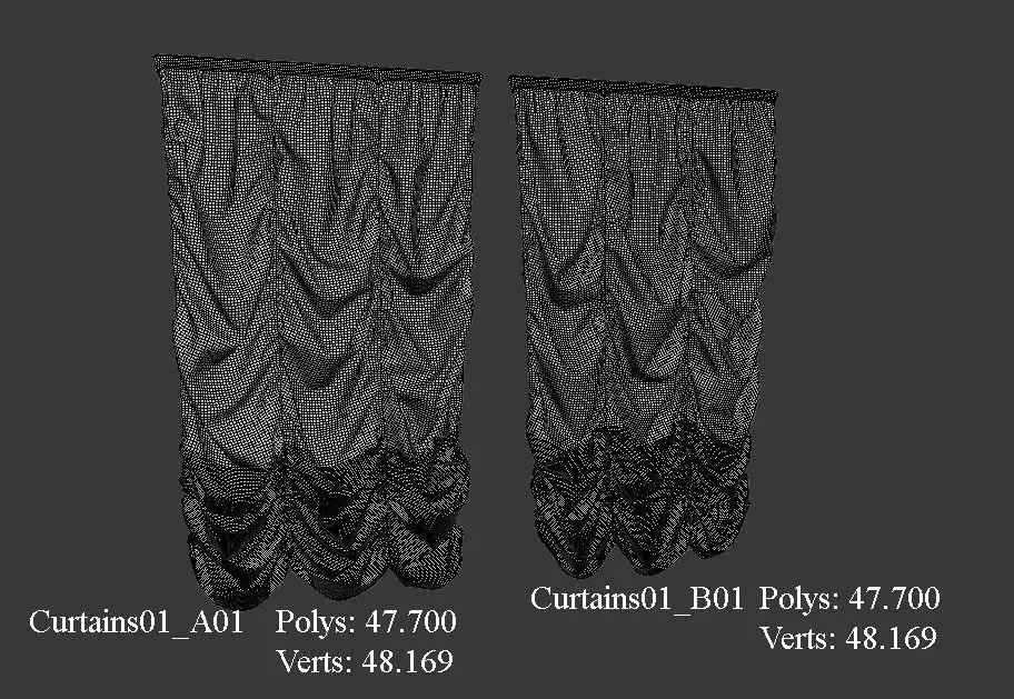 This is Curtains01_Smallest was made in Marvelous Designer 7, retropoly and Unwrap UVW with 3DS Max 2013, ready for use it, so the main file can be open on Marvelous Designer 7 or upper. This file is just like see in the picture doesn't contein a texture just only the propieties on Marvelous Designer and 3DS Max.