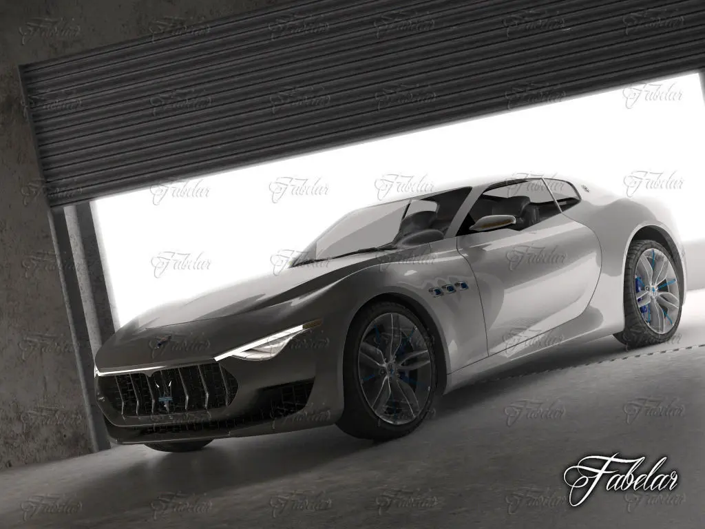 Maserati Alfieri concept and garage environment 3D models, vray, mentalray, multiple formats.