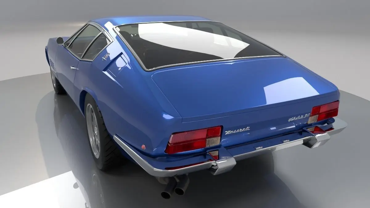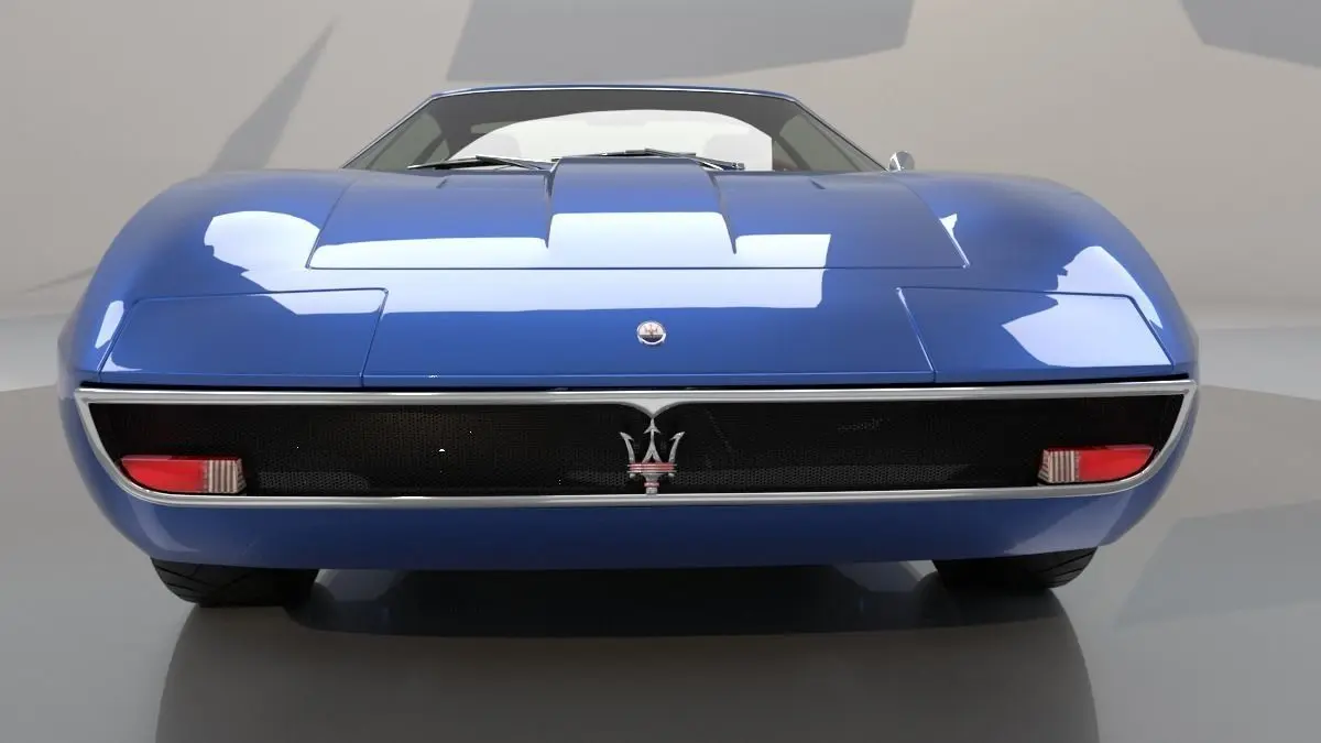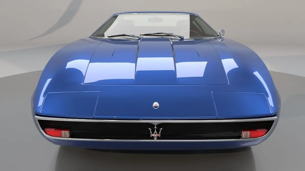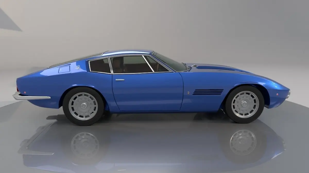 The Ghibli was first unveiled as a 2-seater prototype at the November 1966 Turin Motor Show.[2] Its steel body, characterized by a low, shark-shaped nose, was designed by a young Giorgetto Giugiaro, then working at Ghia. The car featured pop-up headlamps, leather front sport seats and alloy wheels. Two rear seats consisting of nothing more than a cushion without a backrest were added to the production run, allowing the Ghibli to be marketed as a 2-door 2+2 fastback coupé.