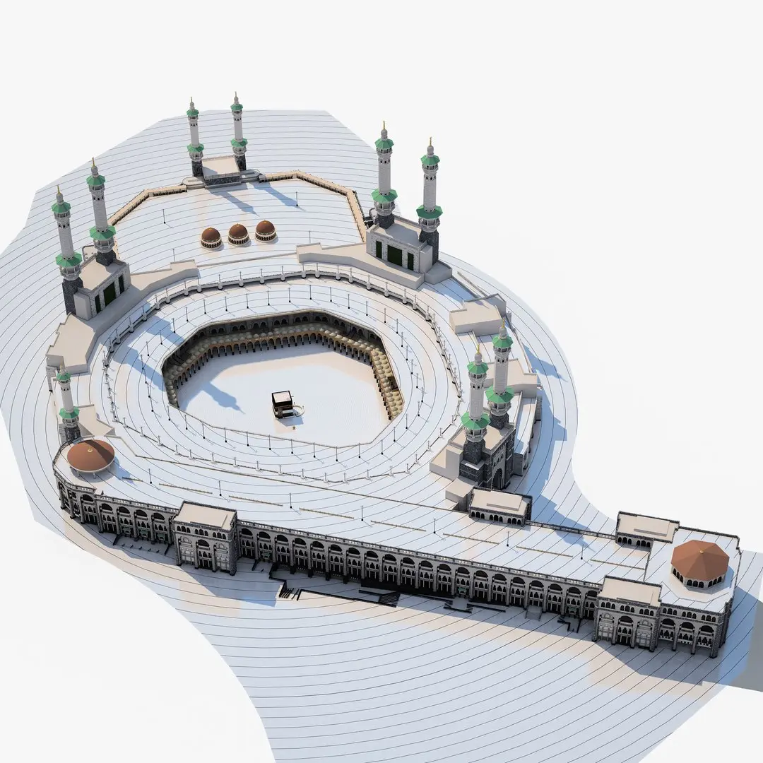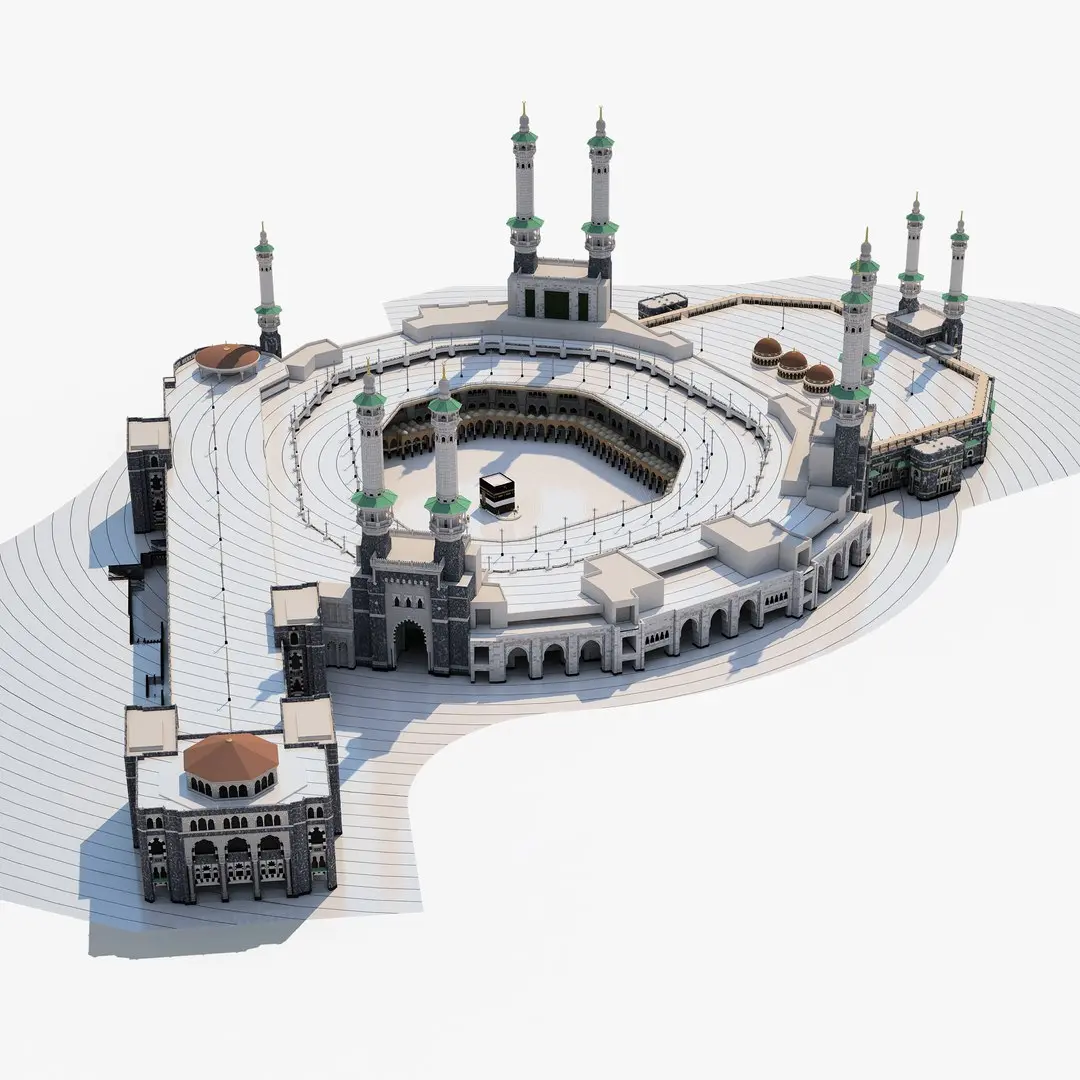 Detailed 3D model of Masjid al-Haram in Mecca, KSA. It shows about the exterior and minor interior of the Grand Mosque around the Kaaba. This model has more detailed parts, improved in many sections and is the most detailed 3d model of the Grand Mosque. It shows the Mosque looks after mataf expansion. This detailed model has enough detail that it can be used for both far and close photography or rendering.
