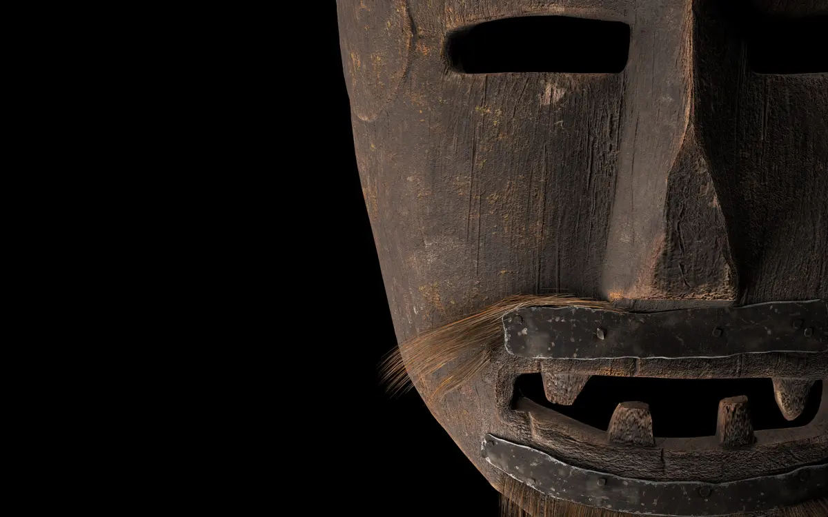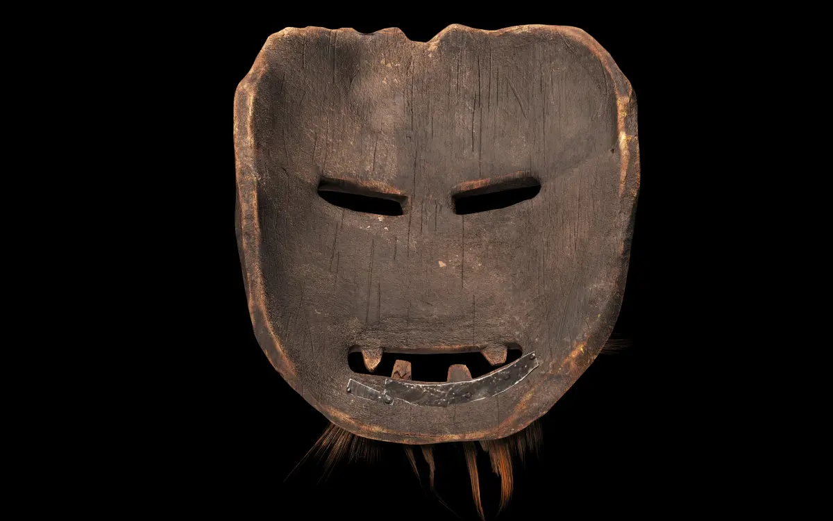 This mask, originating from an unknown region of Nepal, exemplifies the rich animistic traditions of the area. Crafted in the early 20th century, it is made from a combination of wood, metal, and animal hair, reflecting the use of locally sourced materials and a deep connection to nature. The mask likely played a role in spiritual or ritualistic practices, serving as a conduit to connect with ancestral spirits or deities. Its intricate design and material composition highlight the skilled craftsmanship and cultural significance of animistic beliefs in Nepalese communities of the time.