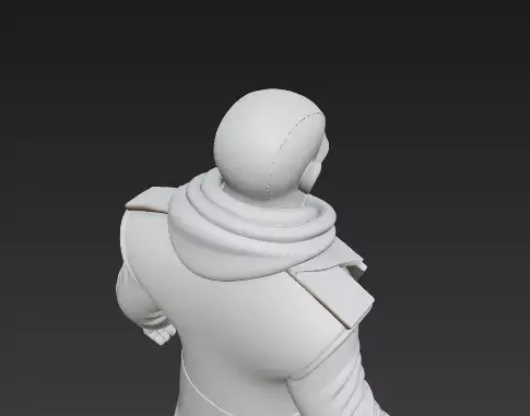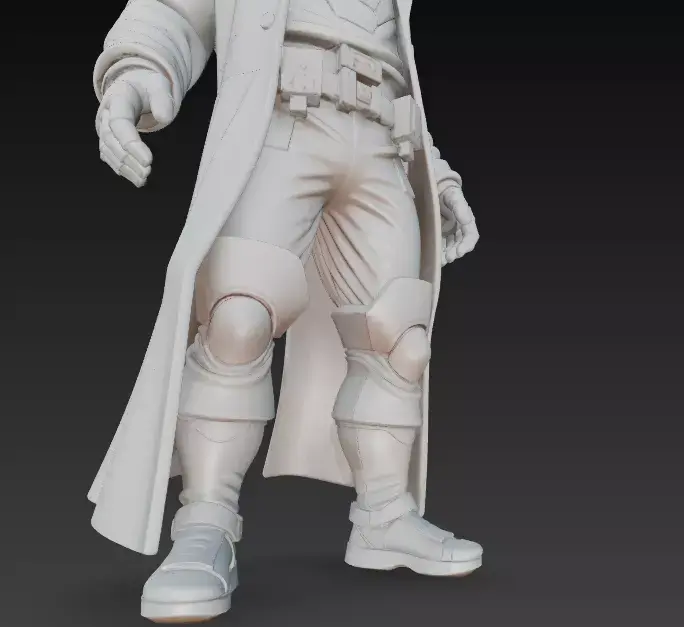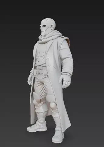 This detailed 3D model presents a masked human warrior designed in a sci-fi fantasy style. Wearing a long trench coat, protective chest armor, and tactical gear, the character exudes a futuristic soldier aesthetic. The mask and scarf enhance its mysterious and commanding look, making it an ideal centerpiece for tabletop games, collectible miniatures, or fantasy dioramas.