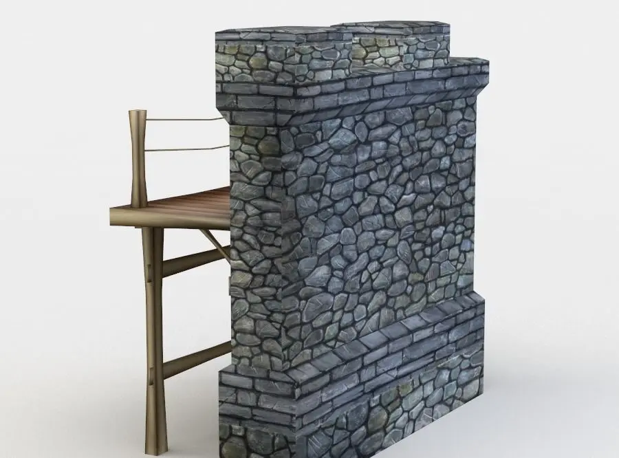 A low poly wall with wooden platform model ready to use for games / AR/ VR.