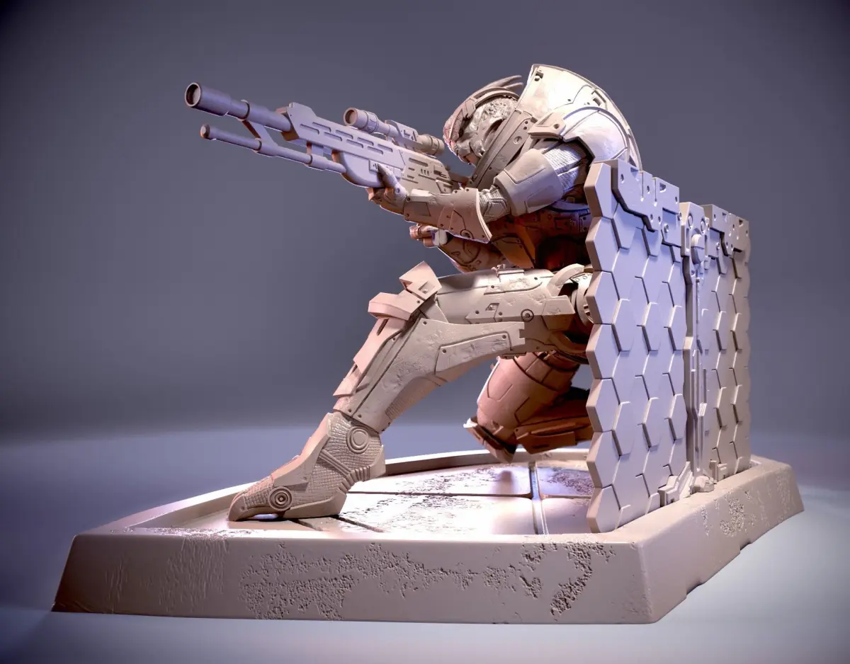 It's so much easier to see the world in black and white. Gray? I don't know what to do with gray. (c)This is my fan art action figure of one of the most popular characters in the Mass Effect game series - Garrus Vakarian, a rogue cop who single-handedly terrorized all the gangs and criminals of the Omega space station.STL is provided for 3D Print.Among other formats including OBJ, FBX and ZTL (Native).STL Mesh is watertight and ready for 3D Print. Dimensions: Height 200 mm / Width 340 mm / Depth 175mmStatue assembling from 34 parts