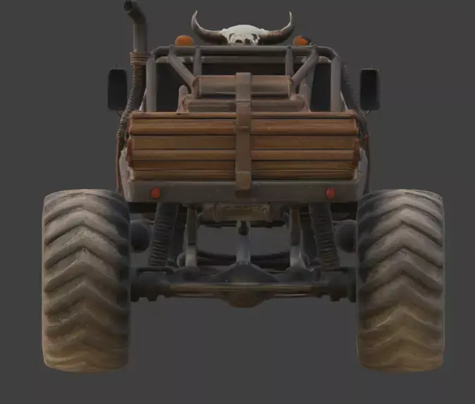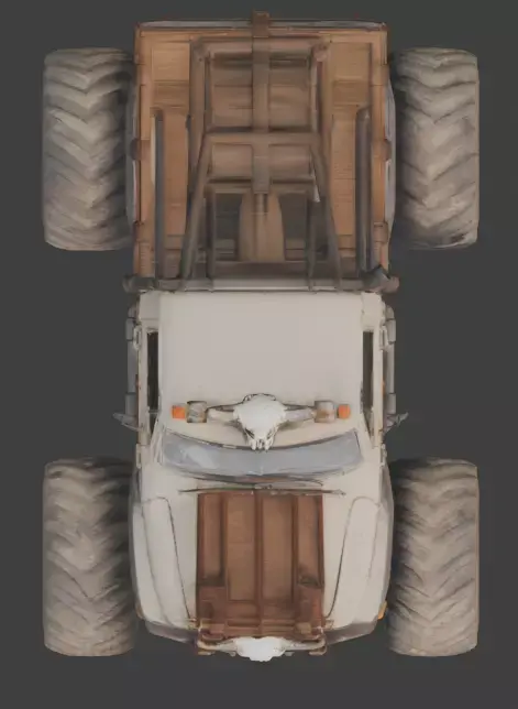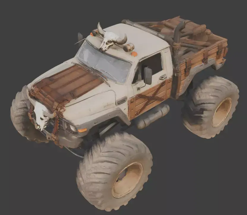 Tags:monstertruckdesertwastelandapocalypticskullwoodenarmoroff-roadmassive4x4raidersurvivalruggedindustrialvehicletransportdune