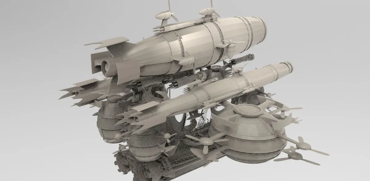 Airship Dragon Emperor Design ship 1 version 3D!! ! model has subtools for the sails and wood parts to assign what textures and materials you want!