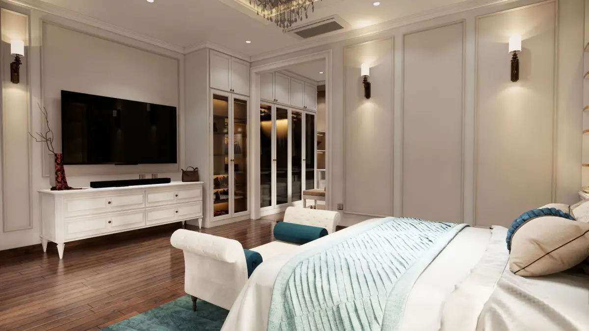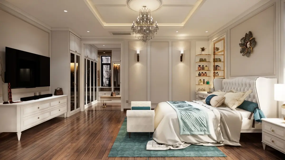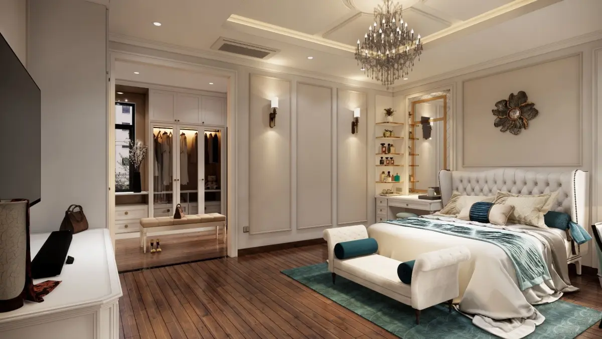 Neo-Classic master bedrrom. The file including bedroom, closet and bathroom.