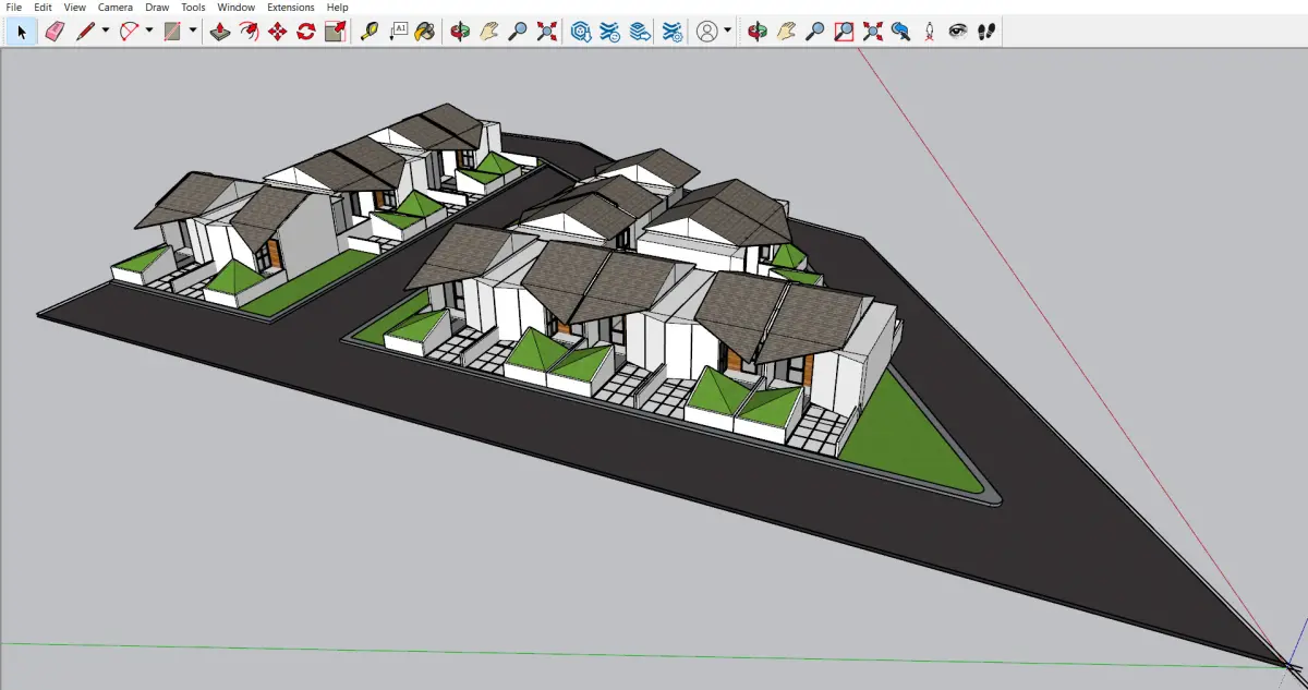 This is a high-quality SketchUp 3D model of a master plan consisting of 16 housing units, designed for residential or developer presentation purposes.