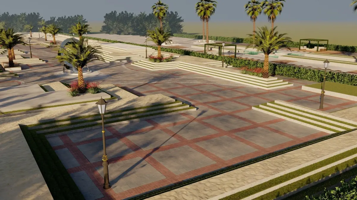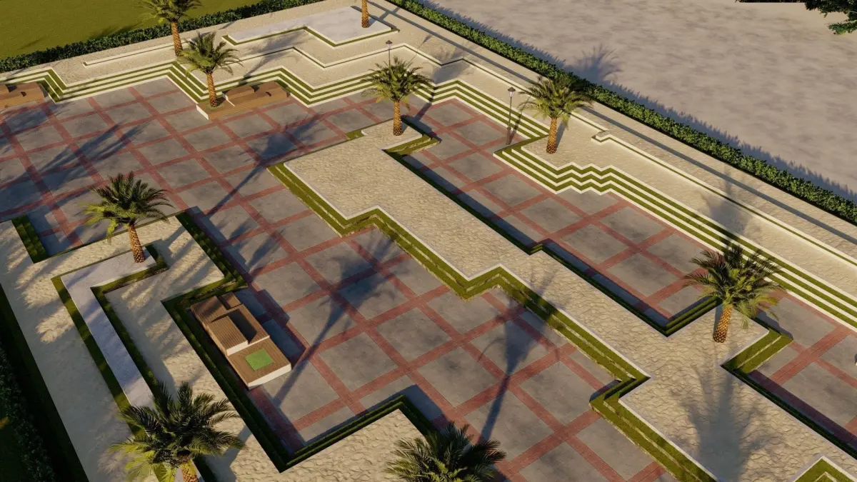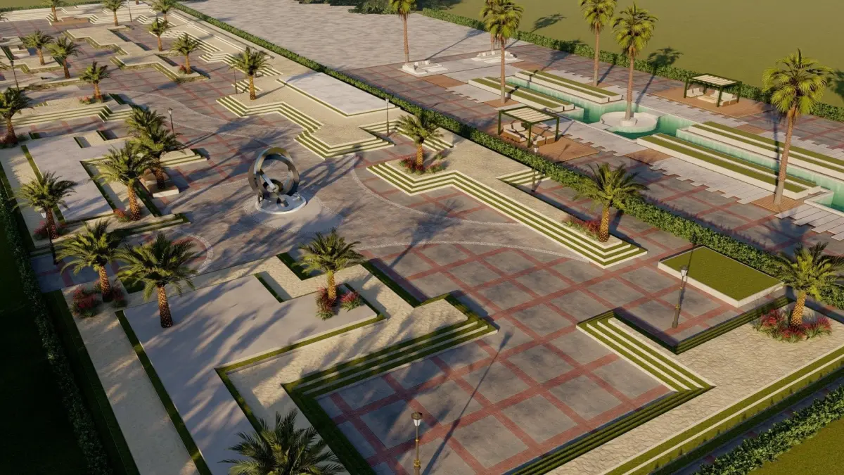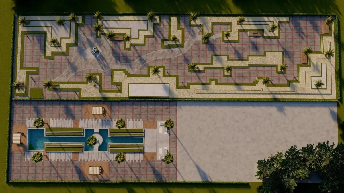 Master plan of landscape garden along pathway outdoor sitting area