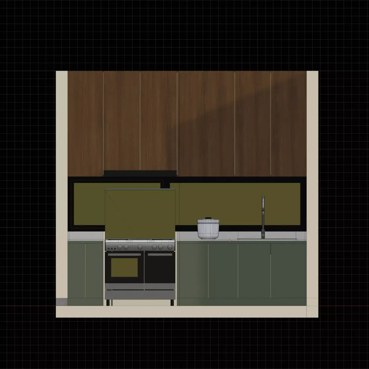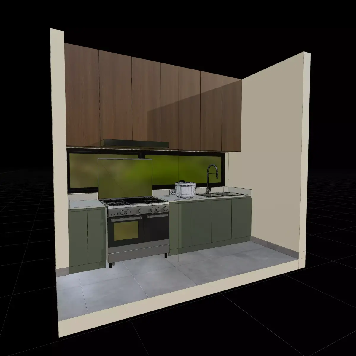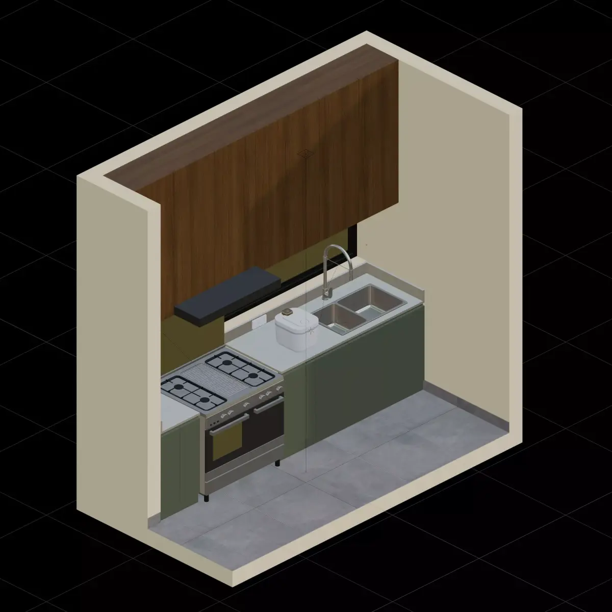 Isometric home kitchen interior 3d scene, including a stove, a rice cooker, and a sink, in a kitchen room, suitable for kitchen interior scene. Originally made in Blender also available in .OBJ and .FBX files.