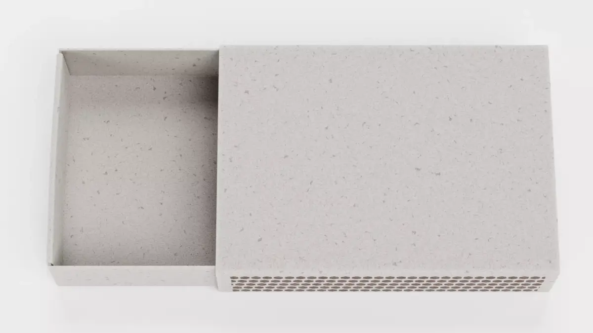 A clean, fully unbranded matchbox model featuring a separate slide-out inner tray and realistic strike surfaces on both sides. The design is intentionally generic, using a subtle recycled-paper texture that fits seamlessly into product renders, prop work, or any scene that needs a neutral, non-distracting utility object. Both parts are individually modeled, allowing to present the matchbox open, closed, or anywhere in between.