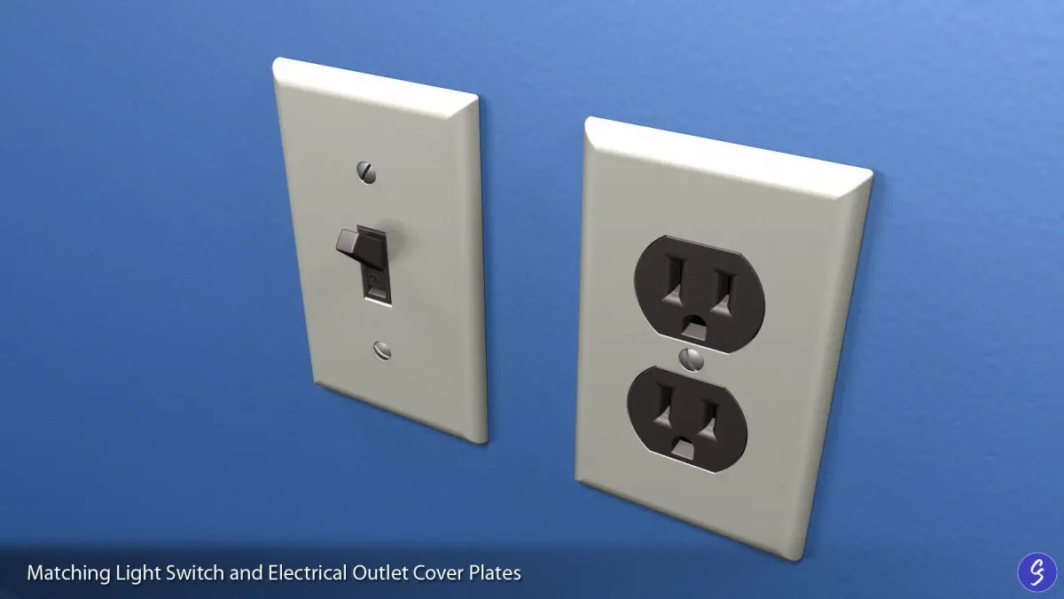 Matching light switch and electrical outlet cover plates, ready for 3D print. Modeled in Autodesk Inventor and provided in multiple file formats. Fits standard-sized light switches and electrical outlets (United States and other imperial regions).