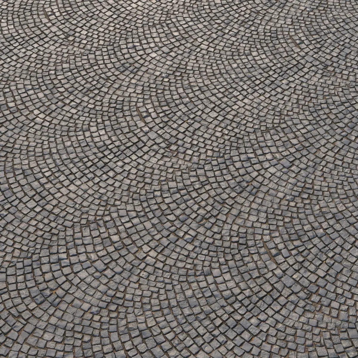 Square paving slabs made of stone, laid in a radial way.
