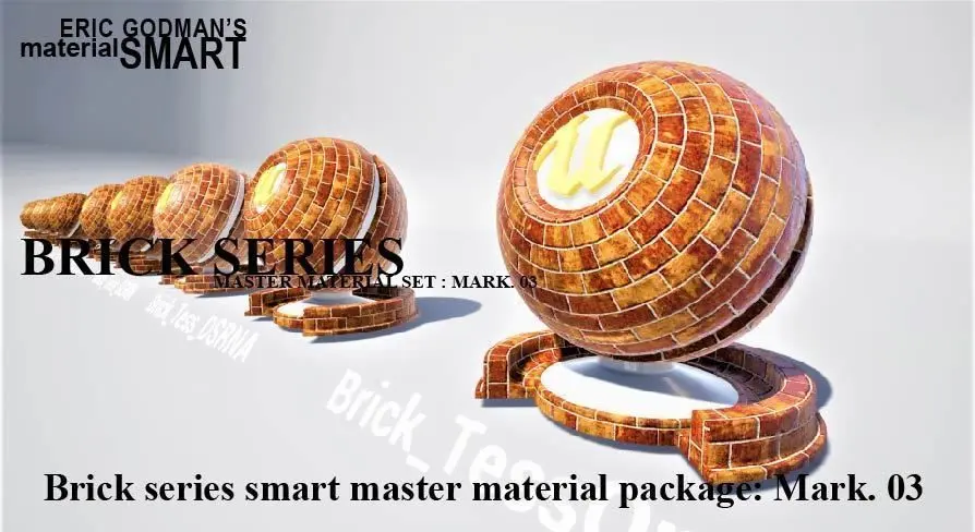 A Set of 18 smart master materials with high customization features for brick/tile related material instances, featuring mobile materials, grunge options, normal mip bias options, bump offset, and tessellation.Simply drag and drop your texture maps to the material instance, fine tune and finalize your materials at once!This package contains a set of 18 smart master materials with high customization features for general purpose material instances for mobile and PC/console game development. A number of 10 custom material functions are also included.Master materials featuring: • Mobile master materials (Basic) • Low-end brand PC/console master materials (Advanced) • Hight map with bump offset feature for mid-end brand PC/console master materials (Height) • Height map with tessellation feature for high-end brand PC/console master materials (Tessellation)Additional functionalities featuring: • Grunge option • Minor Normal Mip Bias option • Simple/advanced specular/roughness options Within each major blueprint type, master material structures are listed as follows: • DSRN: Diffuse, Specular, Roughness, Normal • _DSRNA: Diffuse, Specular, Roughness, Normal, Ambient Occlusion • _ DRN+S: Diffuse, Roughness, Normal, Specular simulated from the roughness map • _DRNA+S: Diffuse, Roughness, Normal, Ambient Occlusion, Specular simulated from the roughness map. • _One: Togglable Specular, Roughness, Ambient Occlusion, and Height/Tessellation all in ONE!Features: • 3 master materials for mobile application development (Basic) • 5 master materials for low-end PC/console development (Advanced_) • 5 master materials featured with height bump offset (Height_) • 5 master materials for high-end PC/console development (Tessellation_) • Grunge option can be toggled on/off • Simple/advanced grunge distribution selection • Simple/advanced specular selection • Simple/advanced roughness selection • Minor normal mip bias can be toggle on/off • One: the ultimate smart material, where specular, roughness, height/tessellation can be toggled on/off. • Specular texture/specular simulated from roughness selection.Number of Master Materials: 18Number of Material Functions: 10Number of Sample Textures: 8Number of Sample Material Instances: 18Folders Include: Level Content, Maps, Materials, Textures Network Replicated: N/ASupported Development Platforms: Android, iOS (Basic series only), Windows, Mac, PS4, Xbox OneSupport Target Build Platforms: Windows, Mac, PS4, Xbox One
