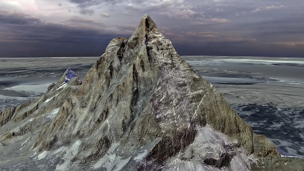 Please read description and check all thumbnails to access package content before buy.Developed from long range imagery and elevation data, the model was built as an irregular triangulated grid mesh with optimized geometry (reduced polycount) and depicts an approximated area of 4696ha/1164ac surrounding Matterhorn Mountain. Generated at full scale, metric system under controlled precision to ensure correct proportions (UTM projected coordinates) this model can be used in several contexts. Package includes Terrain mesh plus three texture maps (obj, mtl, png formats), Terrain mesh with embedded texture (fbx format)Realistic scene with terrain mesh environment sky, light sources and a bottom plane to extend horizon (blend format with external maps setup)Raster elevation model XYZ projected coordinates (.geotiff format)Solid terrain model, trimmed and remeshed as regular quads topology ready to 3D printers (stl format, metric at full scale)Model was brought close to origin to improve rendering performance. Elevation map will show up at original UTM placement.Contact me if you need some more information about the model or if you need a similar model to a different location