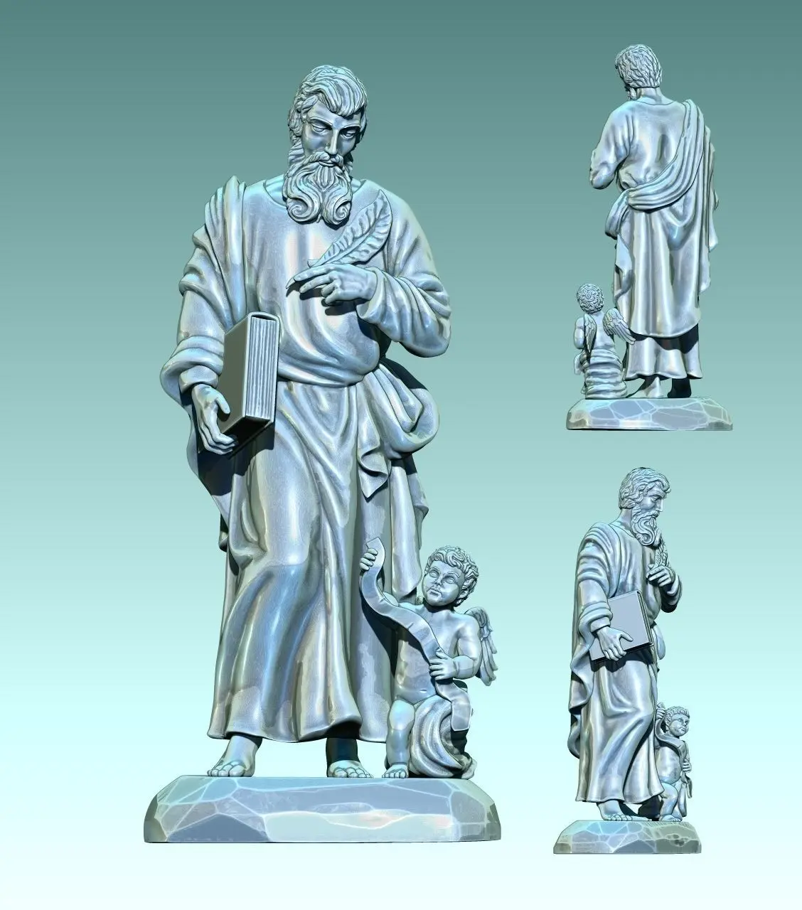 Work done in collaboration with a colleague for his carpentry. Originally designed for CNC Routing Machines. Based on classic designs of Catholic art., The model represents Mateo, one of the four evengelist. In the model I have tried to include all the symbology of the original figure, Specialy in the tunic and cape.... The file is ready for use, you can open it with Aspire or any CNC software. You can contact me if you find any problem.