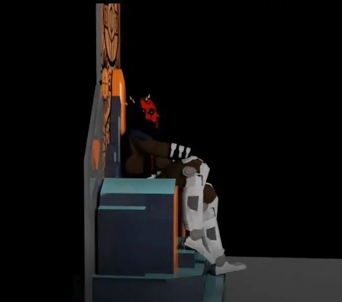 The 3D model of Darth Maul, crafted over several weeks, showcases him seated on the mandalore throne. Fully rigged for animation, with his iconic red and black tattoos, and dark robes. High-resolution textures and realistic materials enhance the lifelike appearance of his skin, fabric, and metal surfaces, making this model ideal for animations, games or just for you to look at.