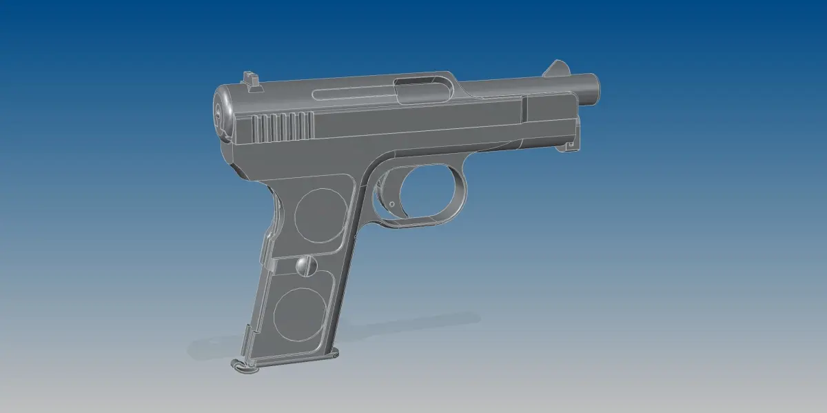 Full assembled model of German pistol Mauser 1914 and its 7,65 mm bullet(also known like 32.ACP)