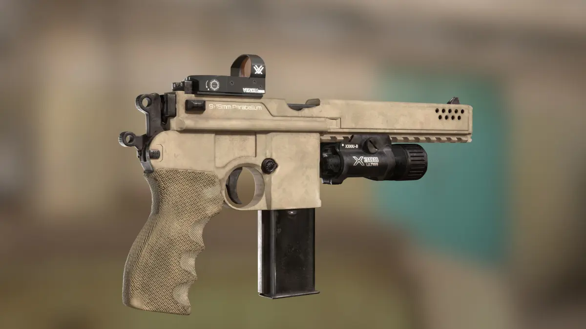 Gun have one 4K PBR material(D/M/R/N) Flashlight and reddot have their own separate PRB textures and materials.