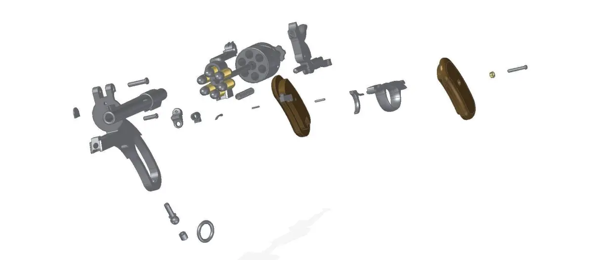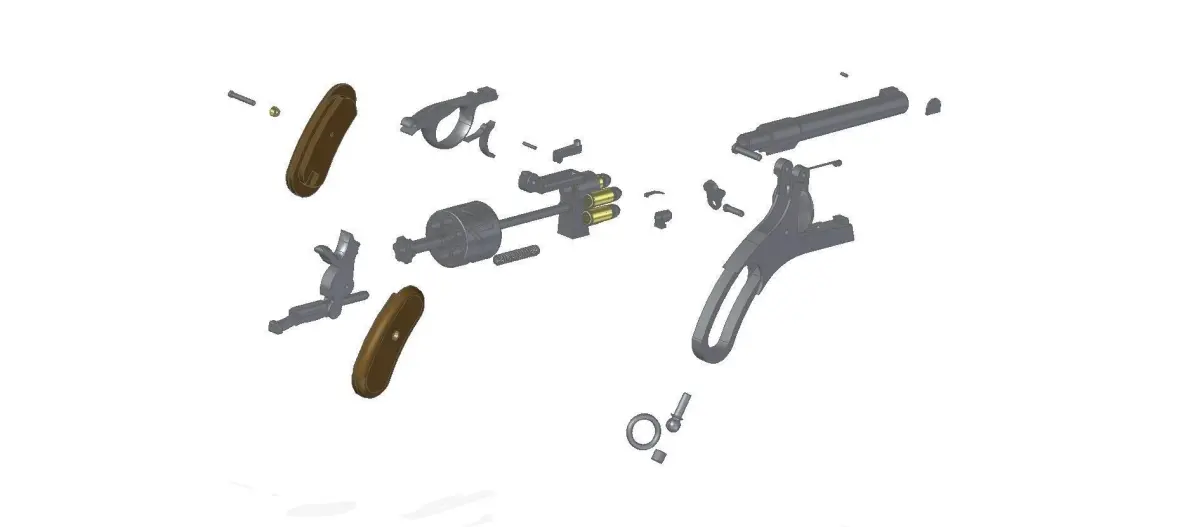 Full assembled model of Mauser C78 Zig-Zag revolver latest version and 10,6-mm Deutsche Ordonnanz bullet