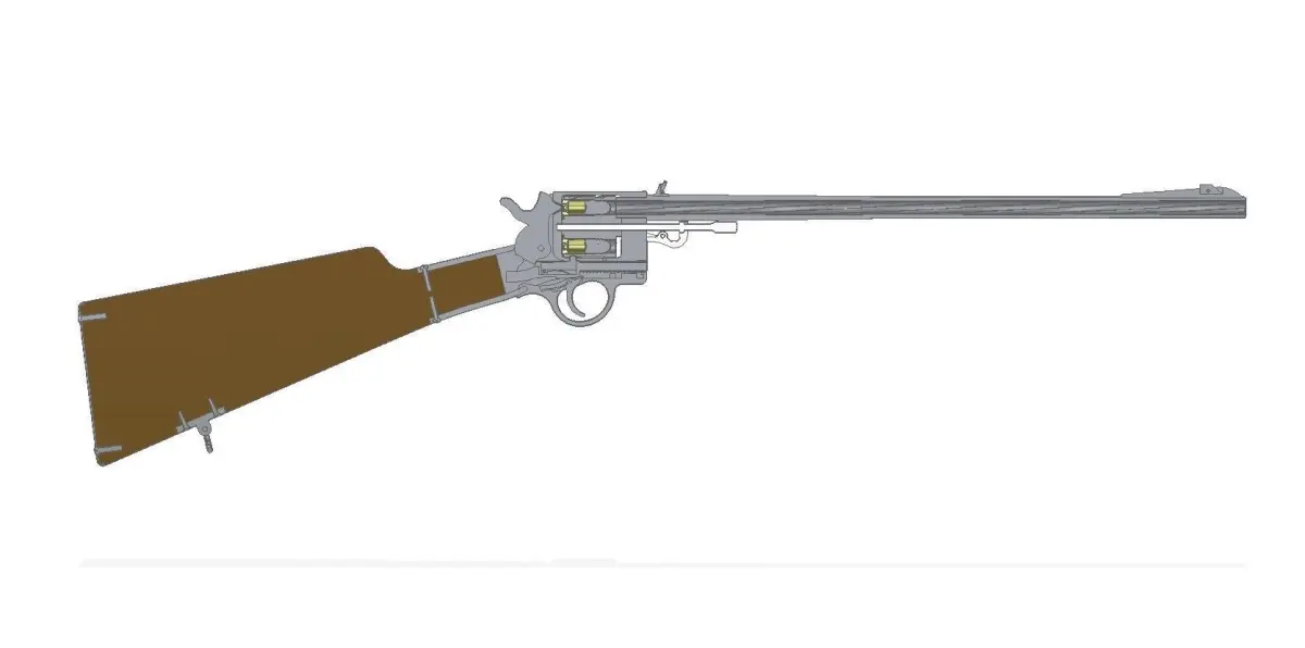 Carbine is maded on fixed revolver version base. It has stoock, another type sights for 2 distances, and longer barrel.