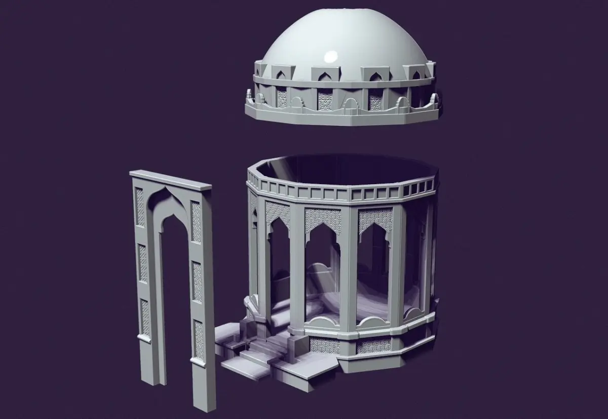 The model is divided into three parts - the dome, walls and door. total height 150 mm. scale as you wish.