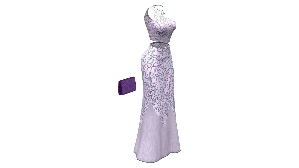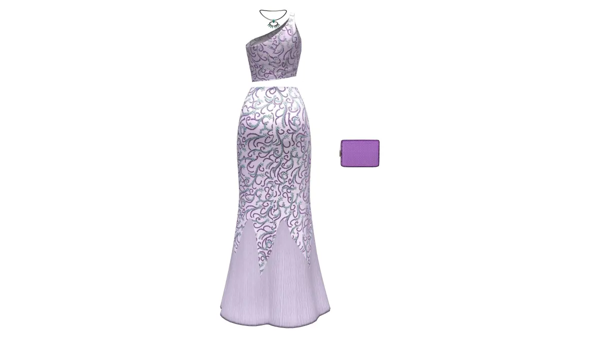 Mauve One Shoulder Top Mermaid Skirt Necklace Purse Outfit